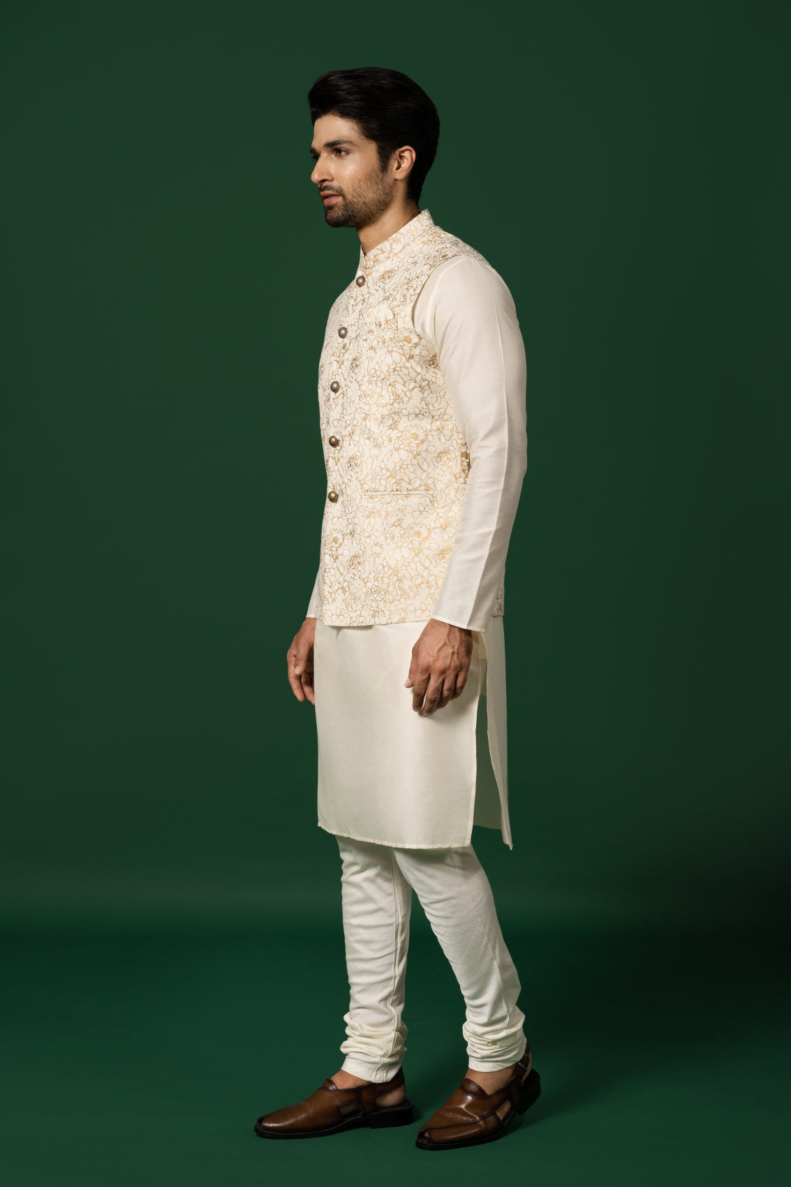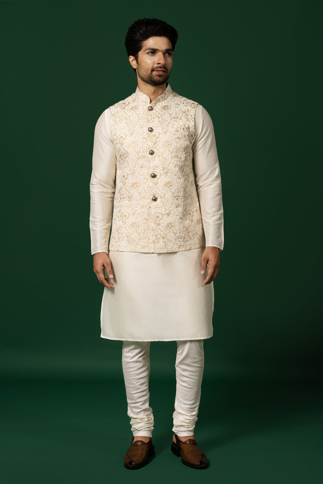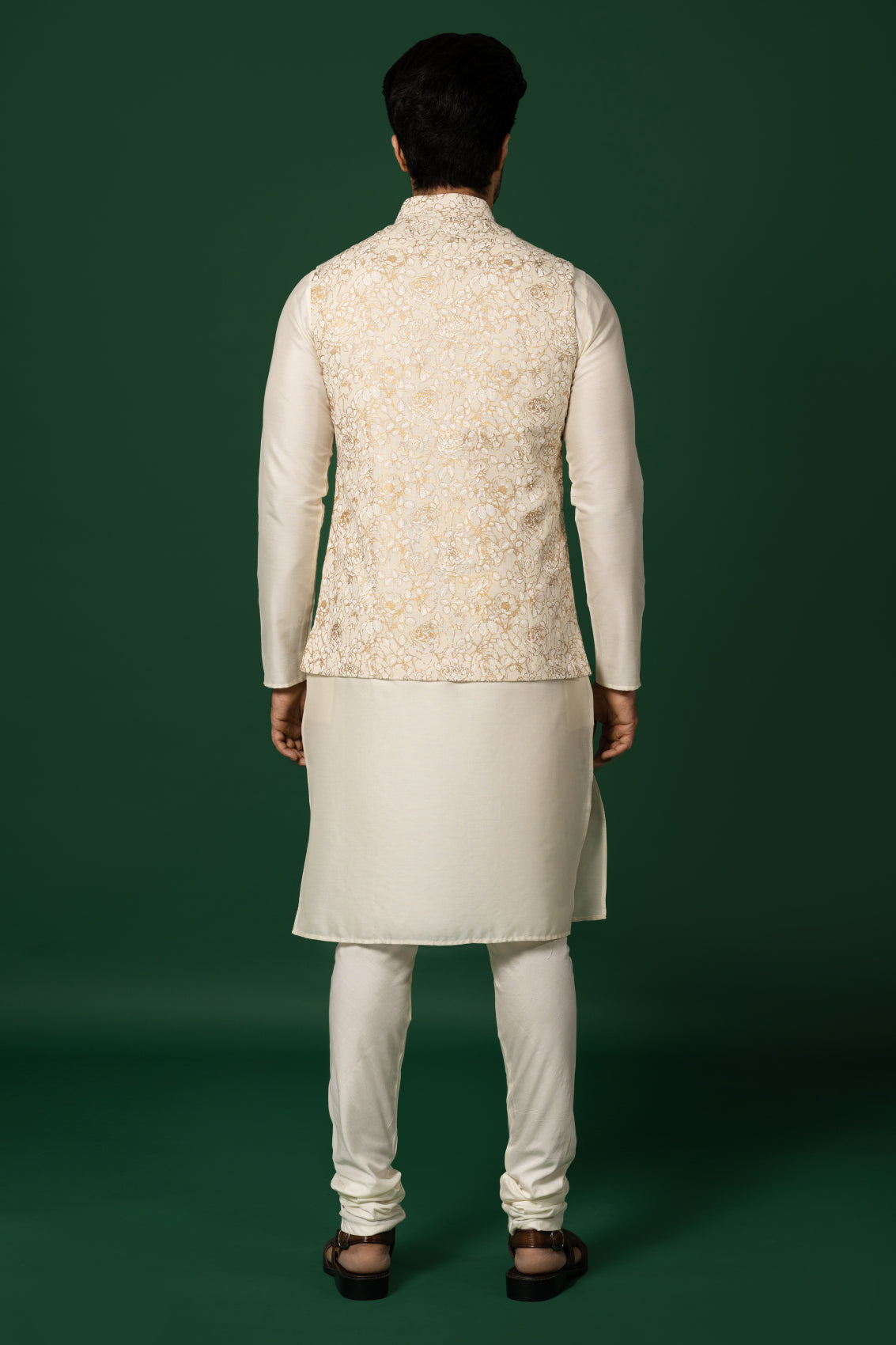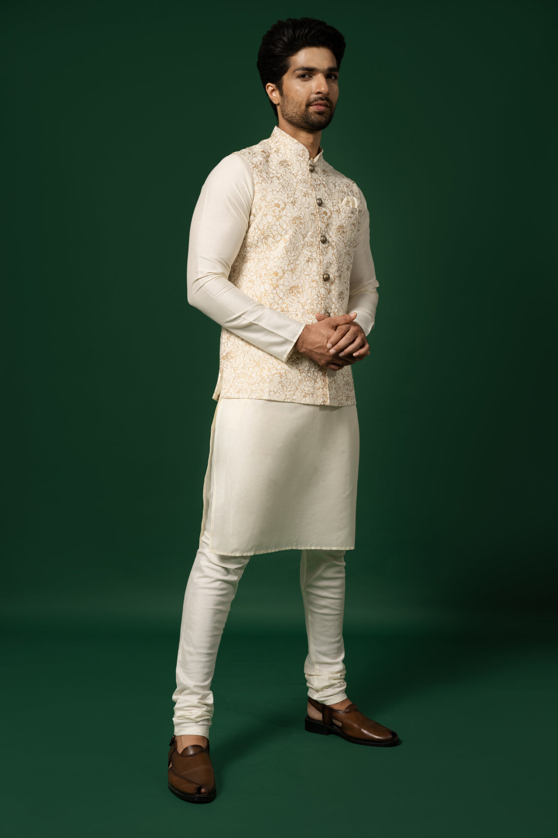Pristine and effortlessly stylish, this Off-White Kurta Jacket Set is the perfect choice for daytime occasions. The refined mandarin collar and subtle printed pattern add a touch of charm, while the breathable Cotton Blend fabric ensures all-day comfort. Designed for those who appreciate understated elegance, this set balances tradition with modern flair, making it ideal for celebrations, gatherings, or festive events.