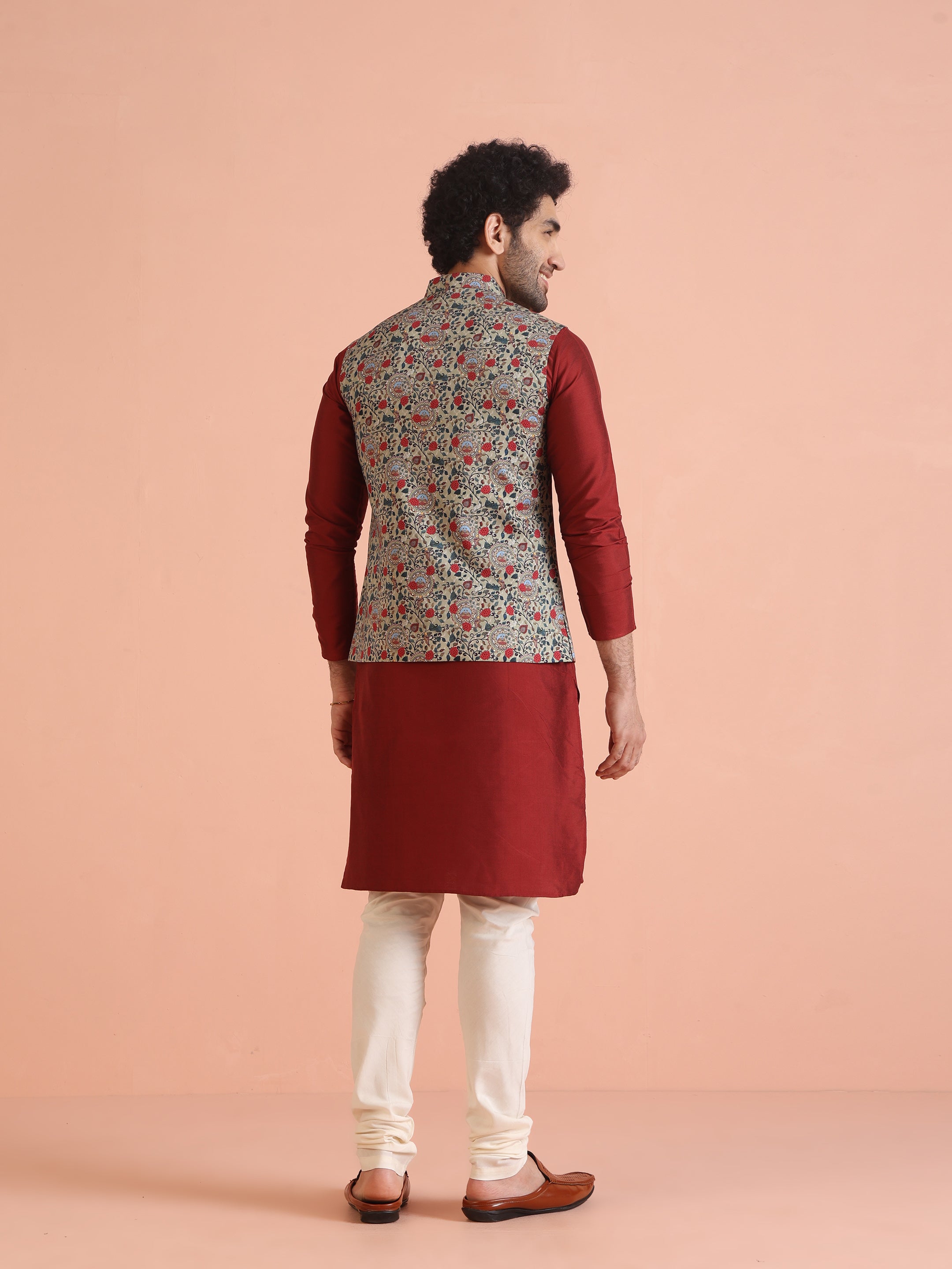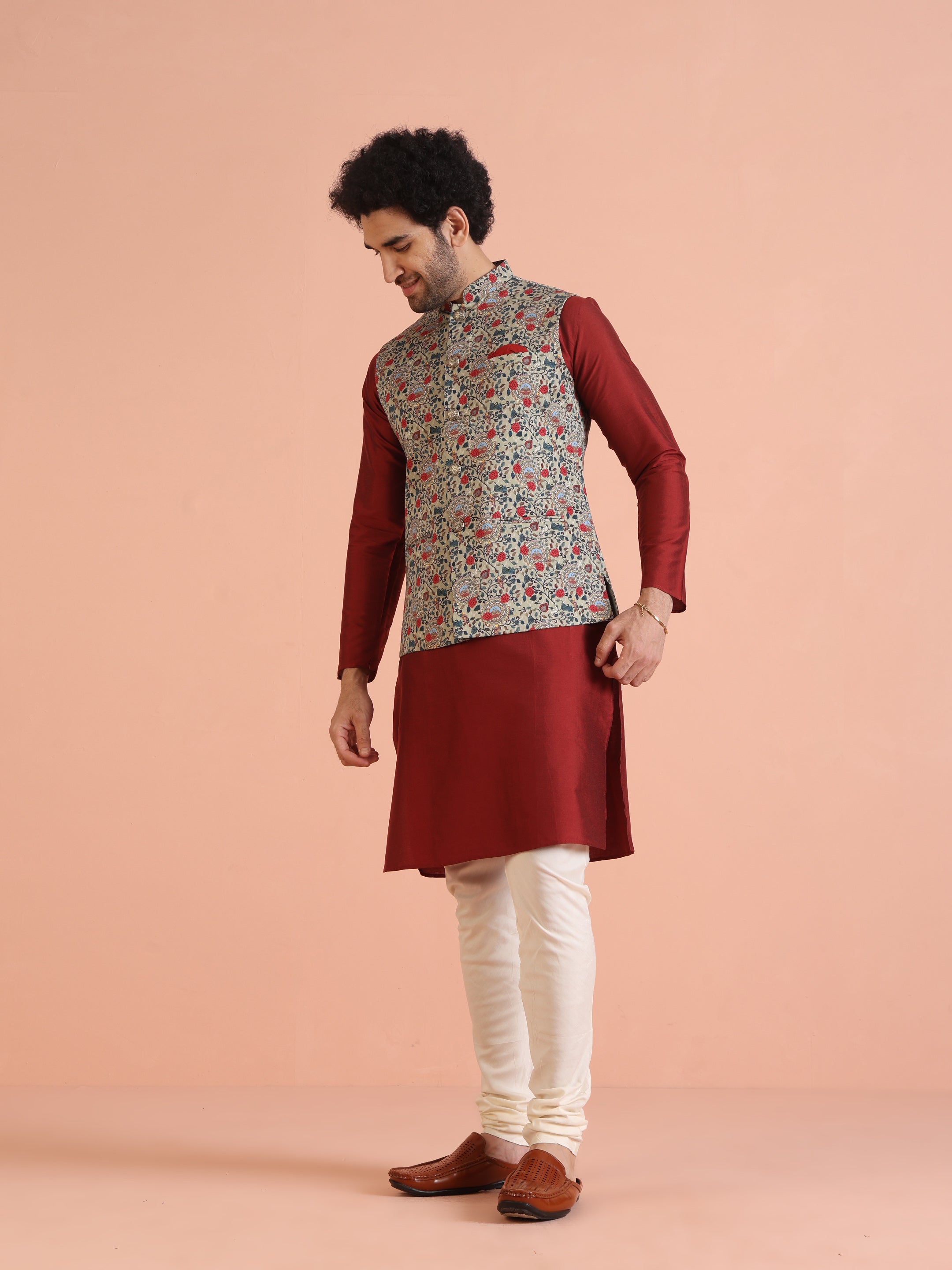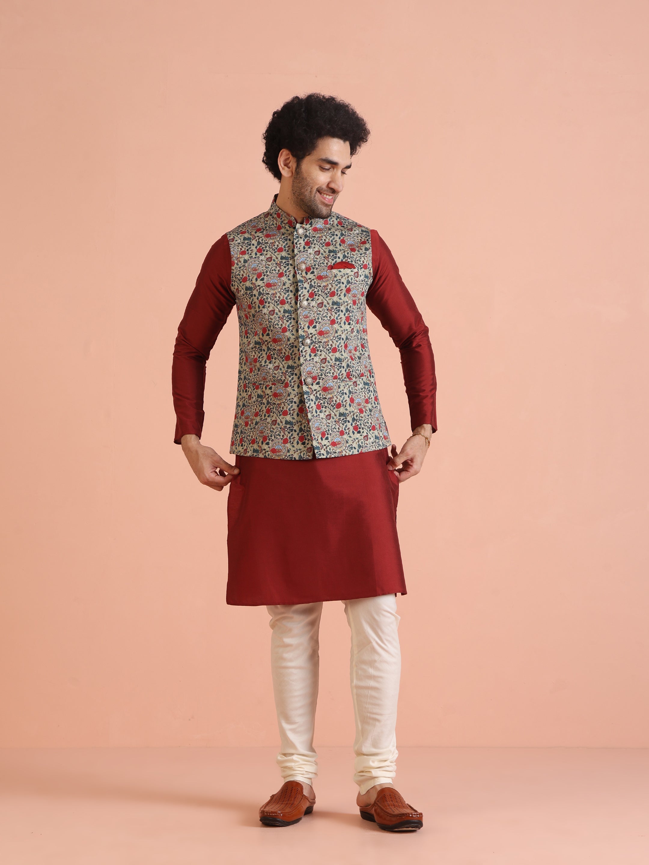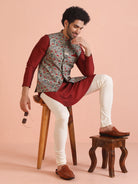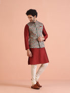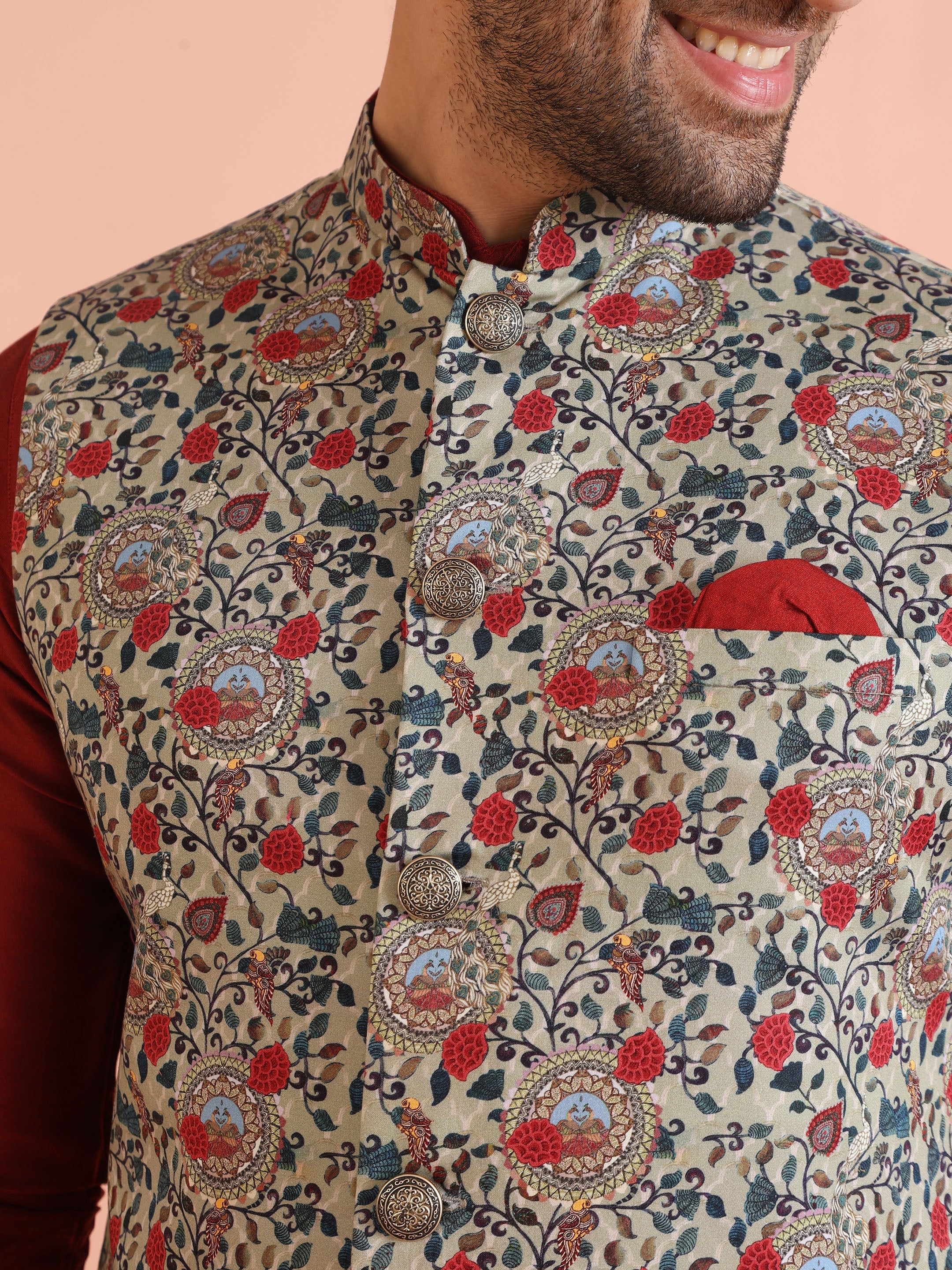 This Nehru Jacket is just perfect for festivals, or any kind off occasions. Its mandarin collar, style gives a charming look, this classic design is made from Cotton Blend fabric and Stylish Printed Pattern comes in Olive colours. Perfect for any occasion.