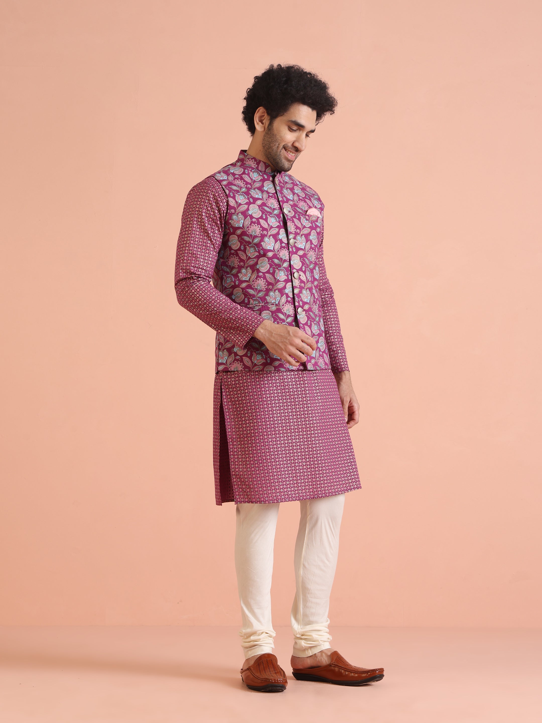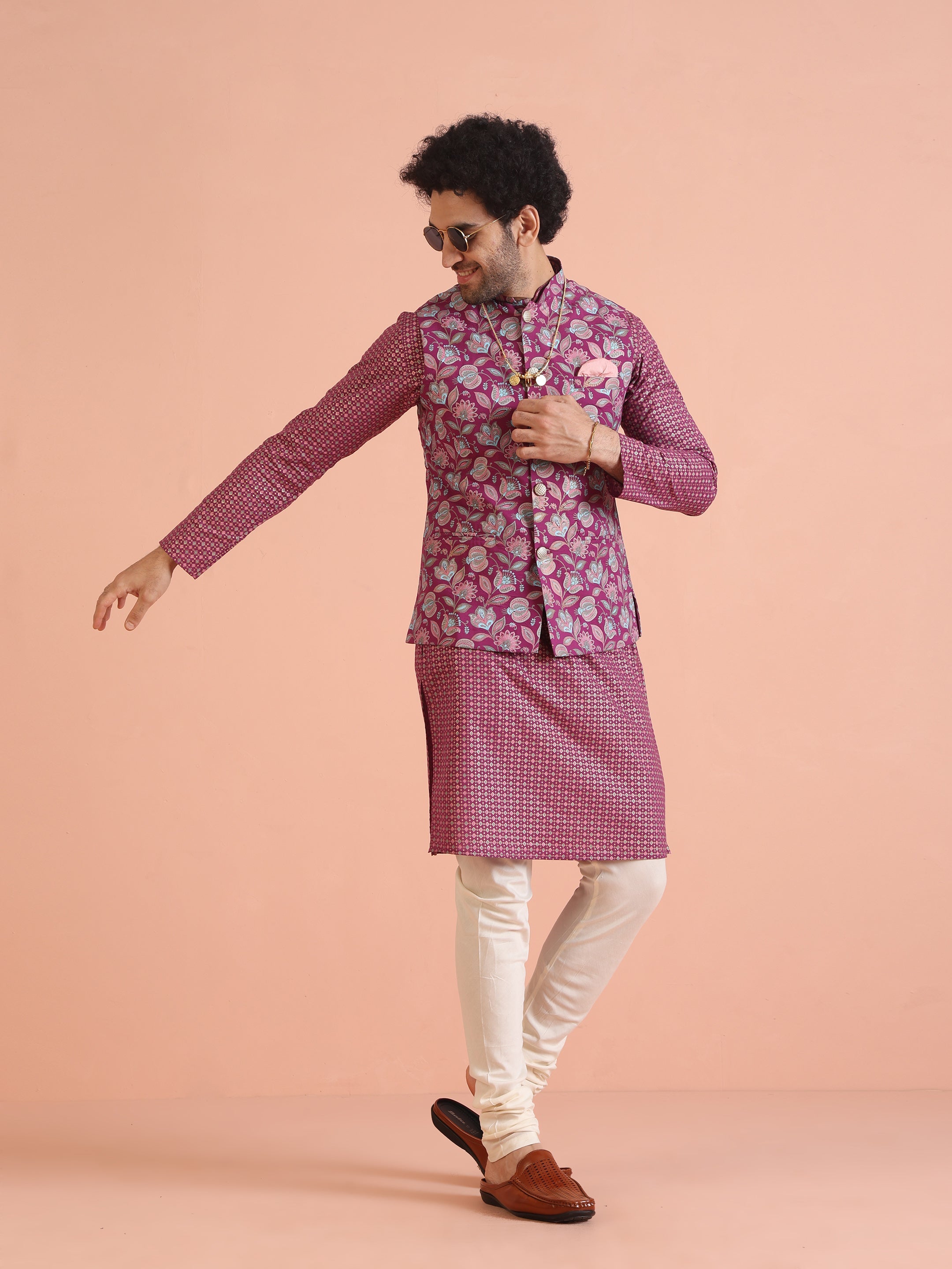 This Nehru Jacket is just perfect for festivals, or any kind off occasions. Its mandarin collar, style gives a charming look, this classic design is made from Pure Cotton fabric and Stylish Printed Pattern comes in Pink colours. Perfect for any occasion.