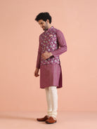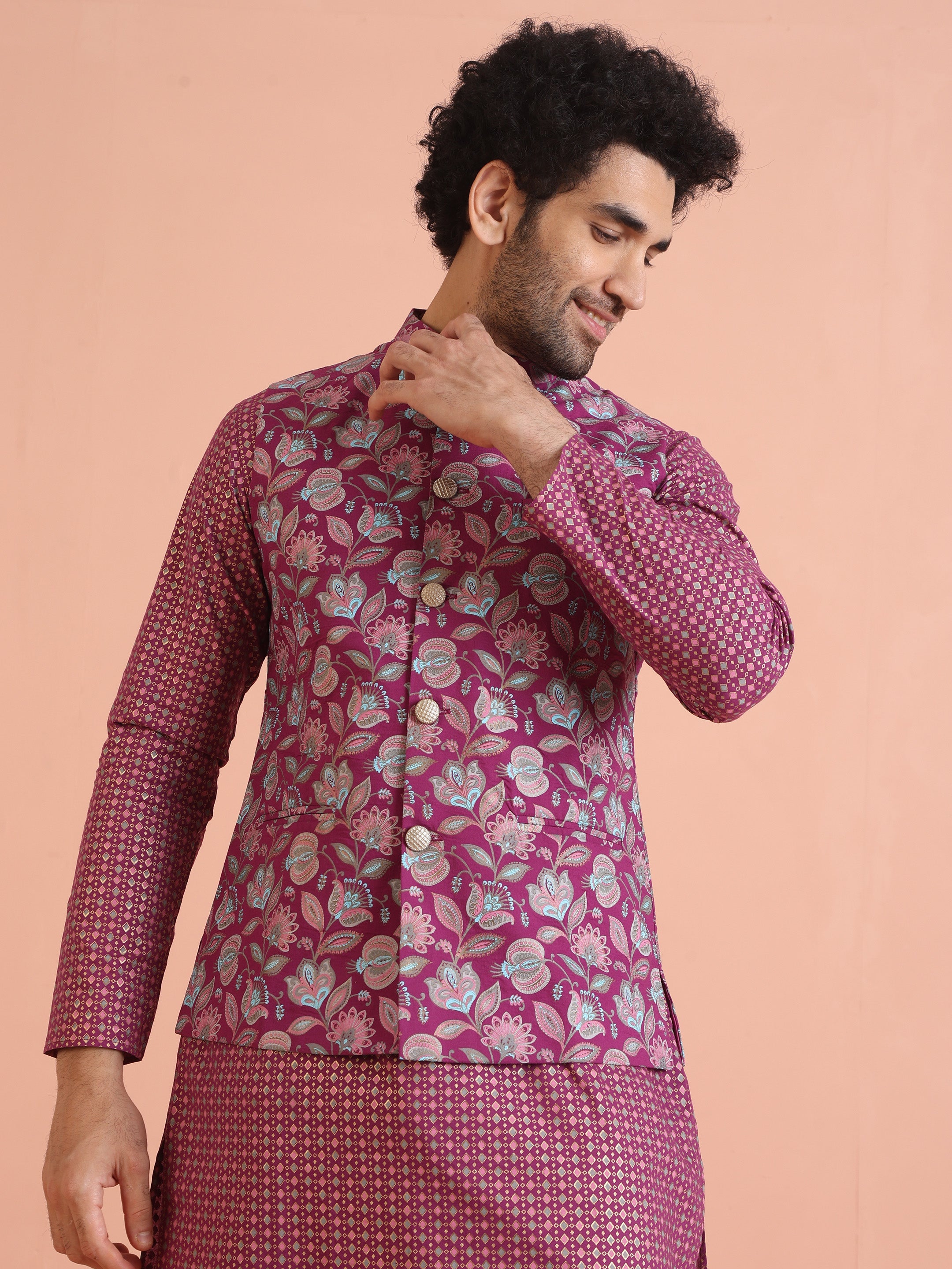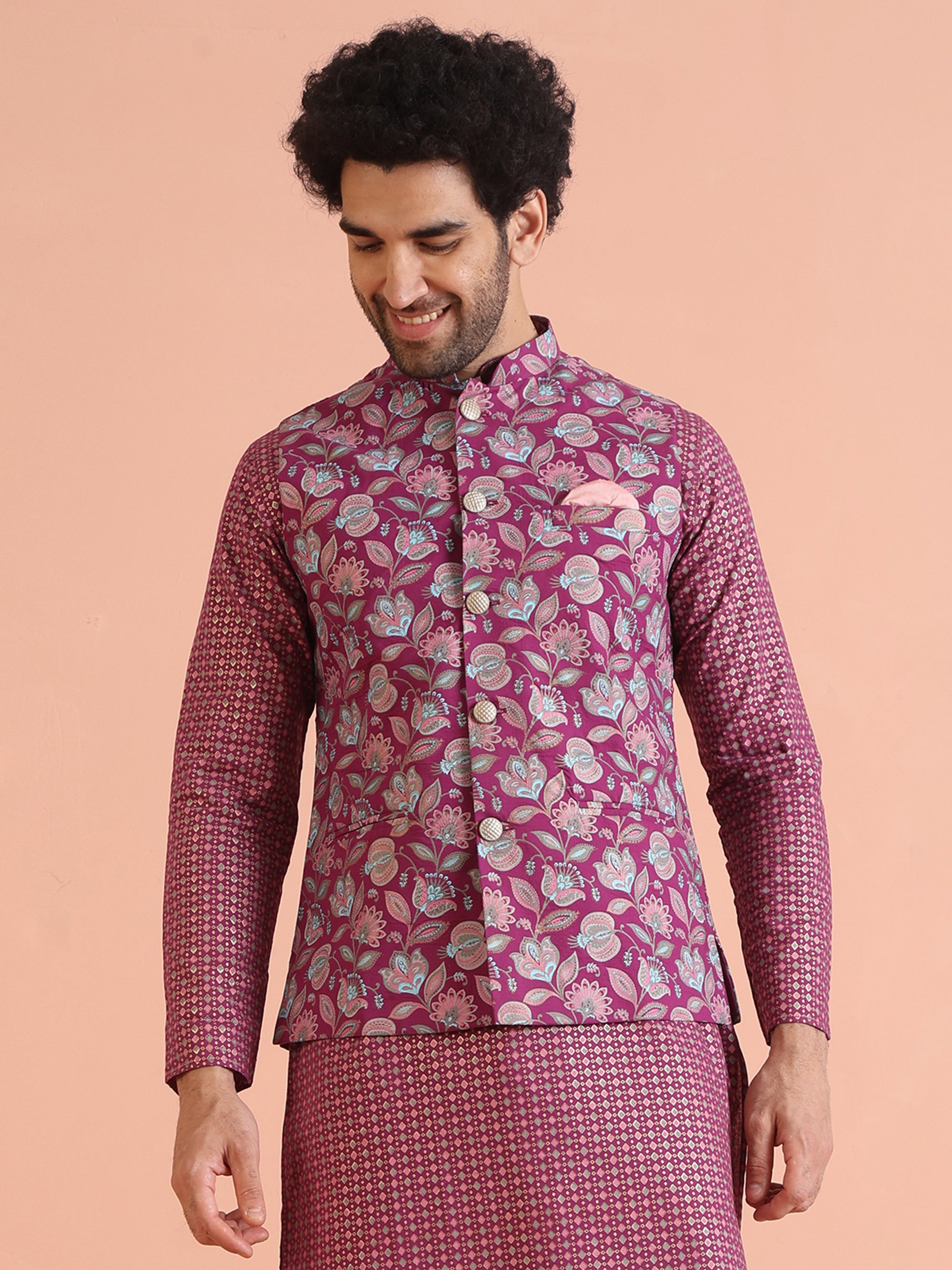Pink Silk Blend Floral Jacquard Nehru Jacket