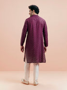 This Kurta Set with Wine Color is an elegant mandarin collar style that is perfect for occasional wear. With a full sleeve Ethnic Motifs design and comfortable fabric, it will make you look stylish.