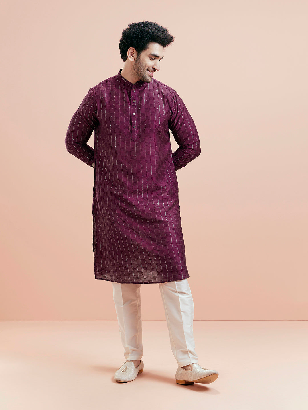 Men's Wine Kurta Trouser Set