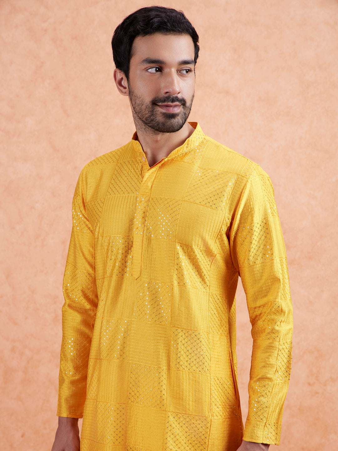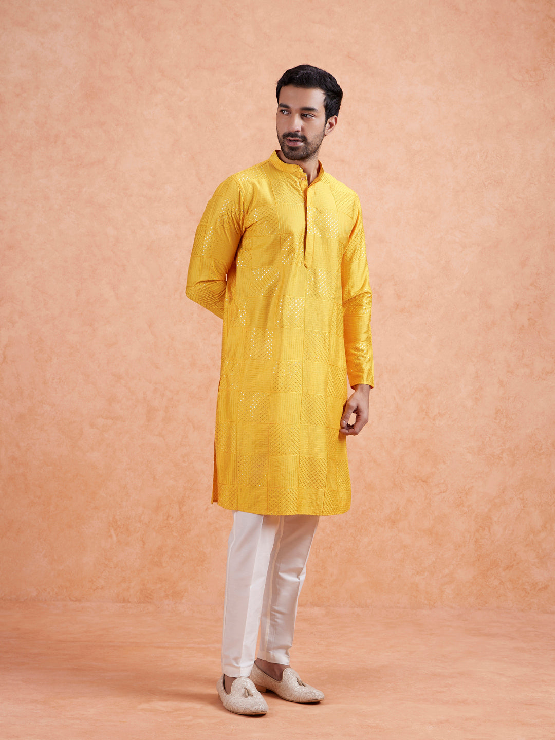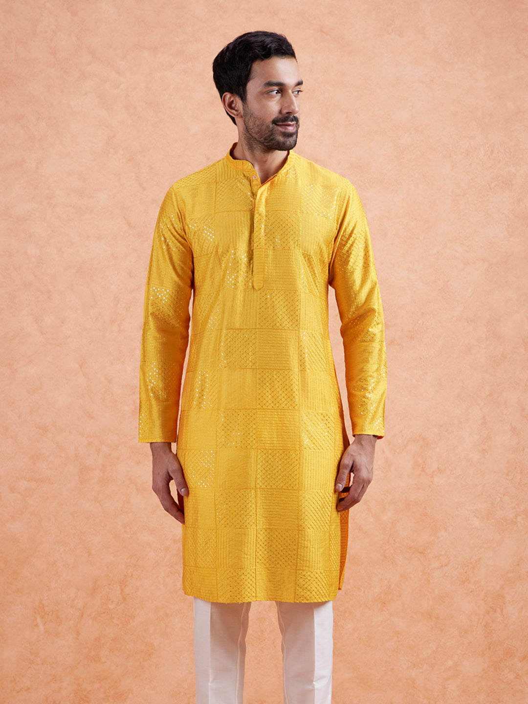 The Kisah kurta is ideal for men looking for stylish yet comfortable attire. Crafted from Cotton fabric, Yellow color, stylish Embellished pattern, and comfortable fit make it perfect for festive wear.