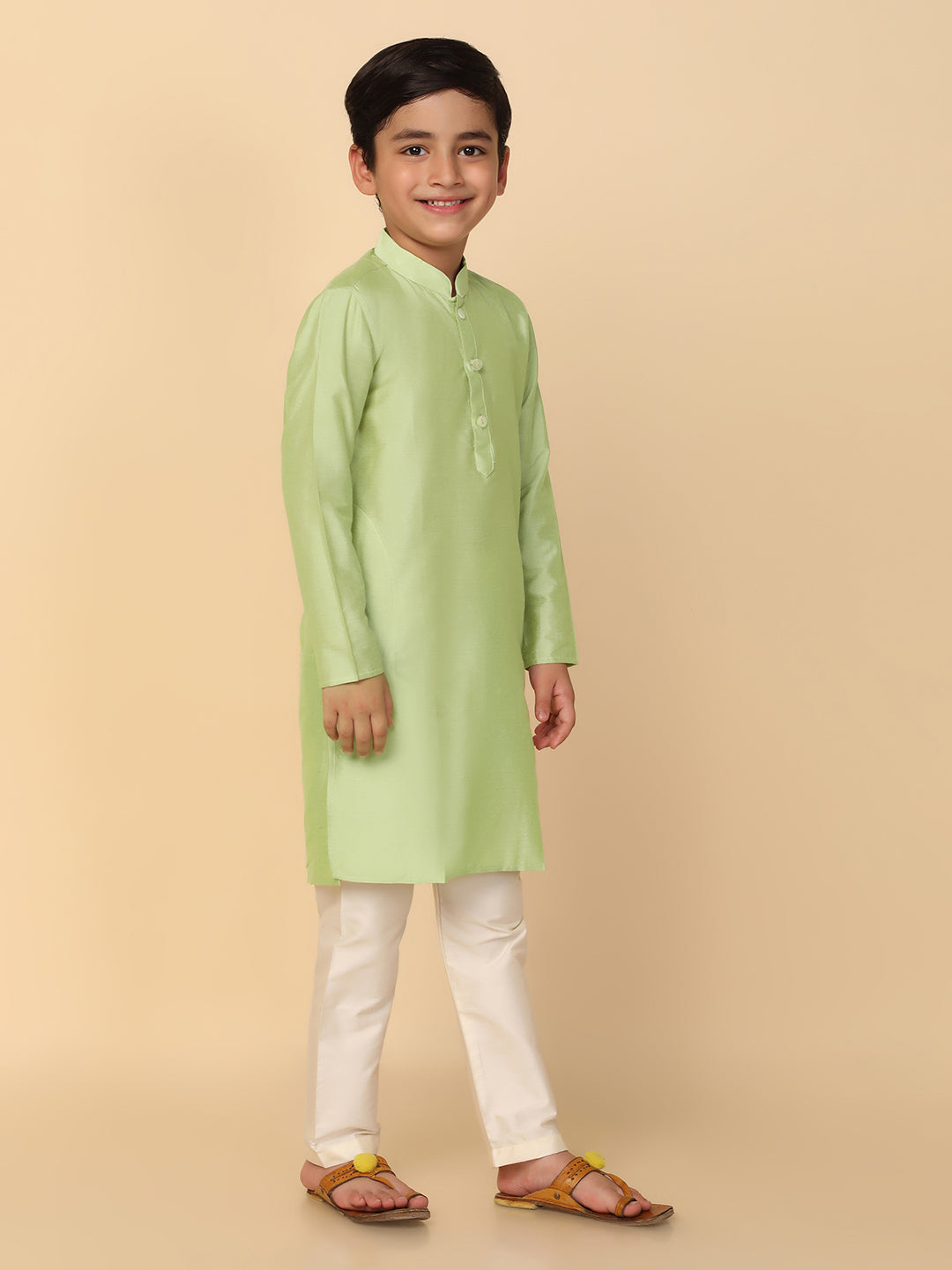 This Kurta is just perfect for festivals, or any kind off occasions. Its mandarin collar, style gives a charming look, this classic design is made from Cotton Blend fabric with Solid Dyed patterns and comes in Green colours. Perfect for any occasion.