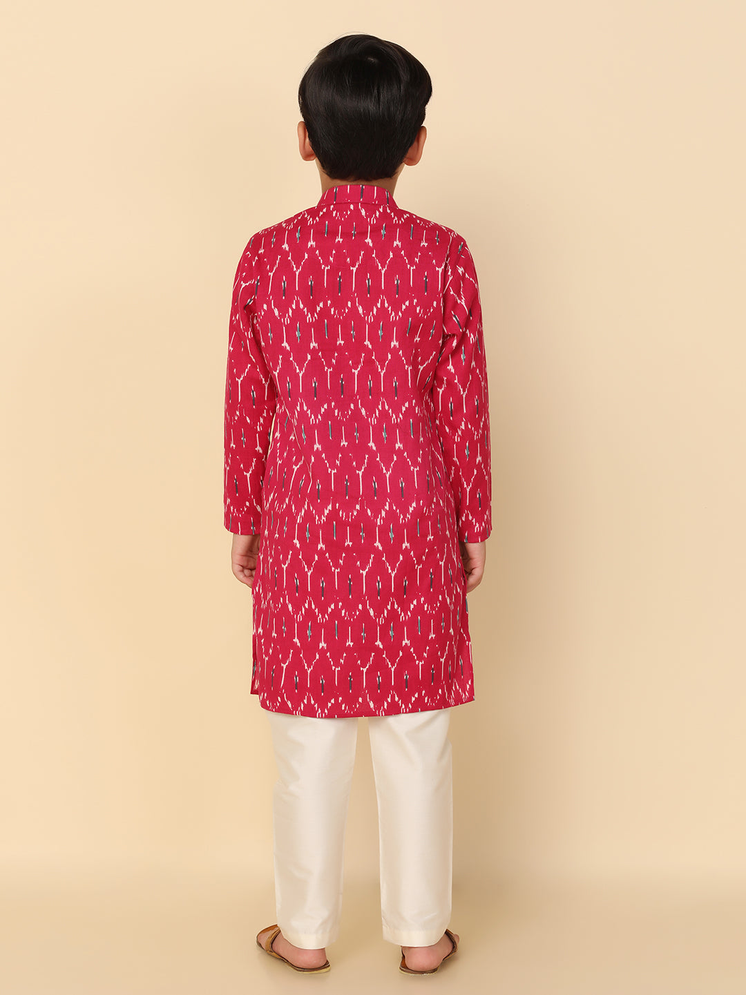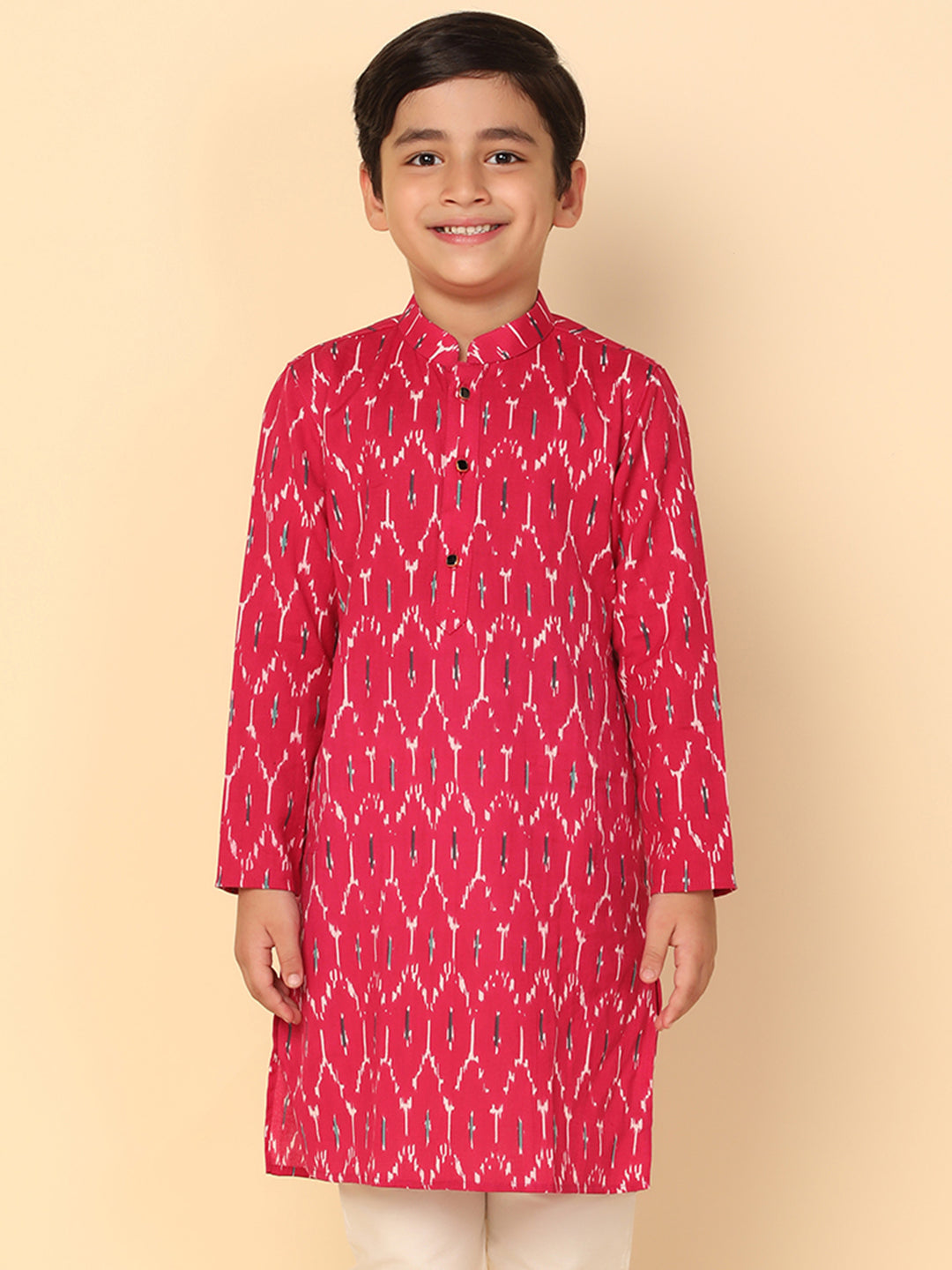 Elevate your ethnic wardrobe with this pink cotton blend kurta. Featuring a printed design and regular fit, it's perfect for any occasion.
