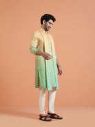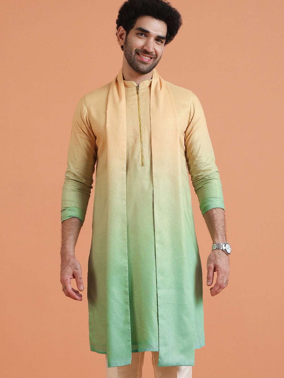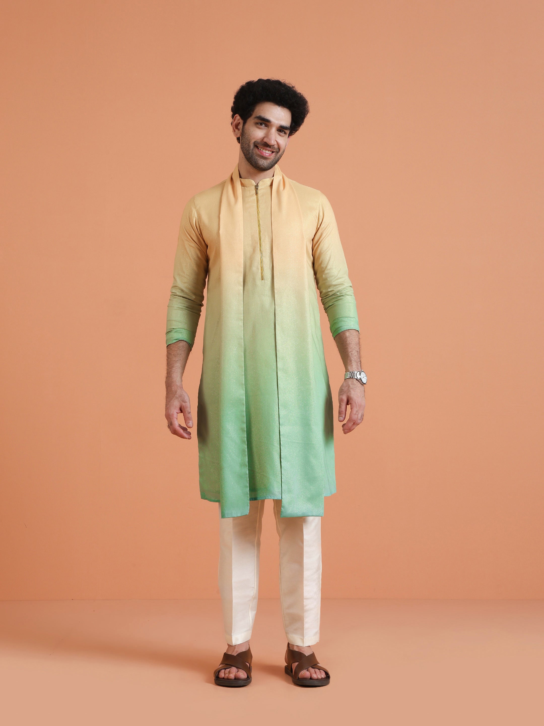 Kisah yellow-green ombre cotton silk dupatta with gradient finish. Elegant festive accessory to style with sherwanis & kurta sets.