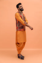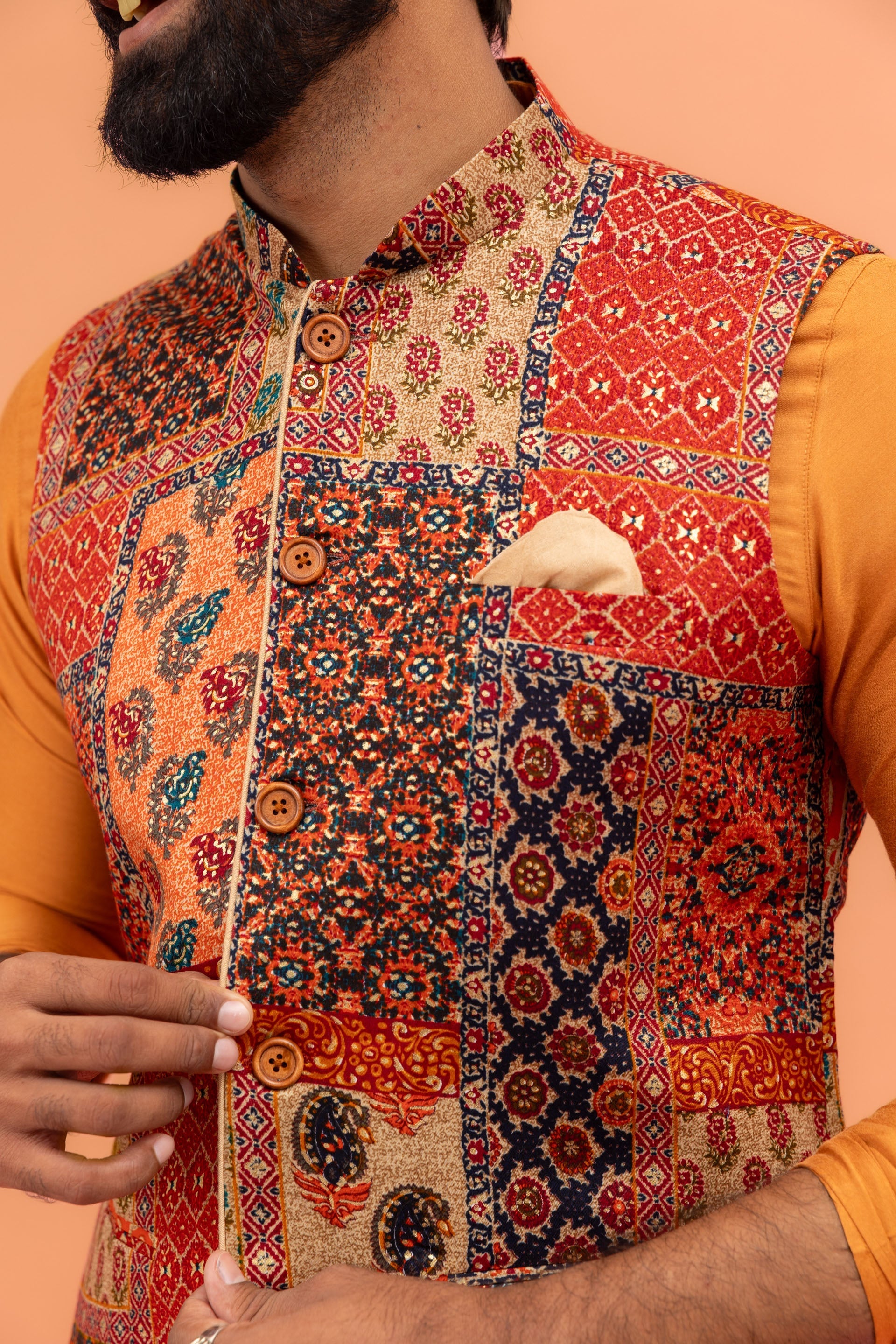 Multi-Coloured Printed Nehru Jacket Kurta Dhoti