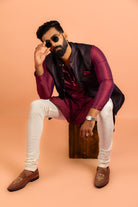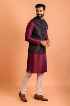 Maroon Silk Blend Jacket Kurta Churidar Set