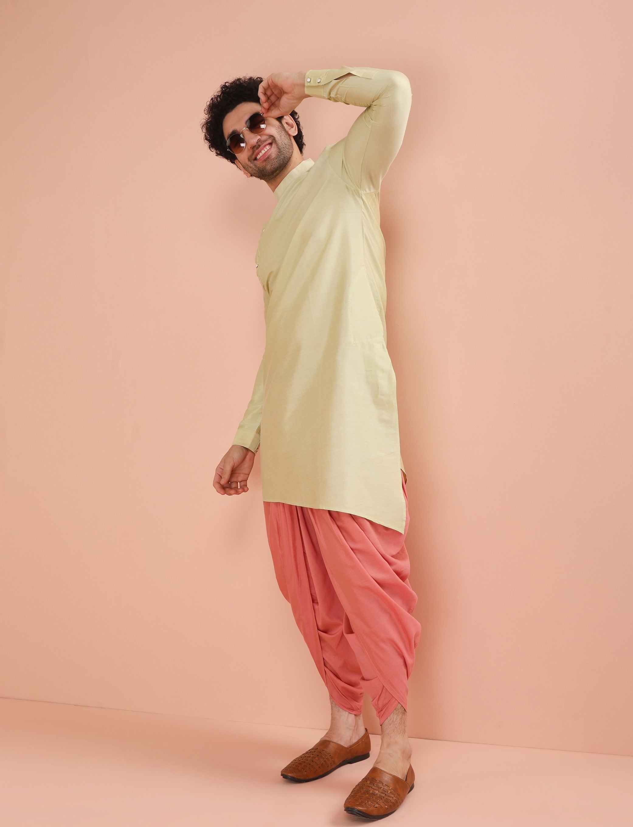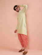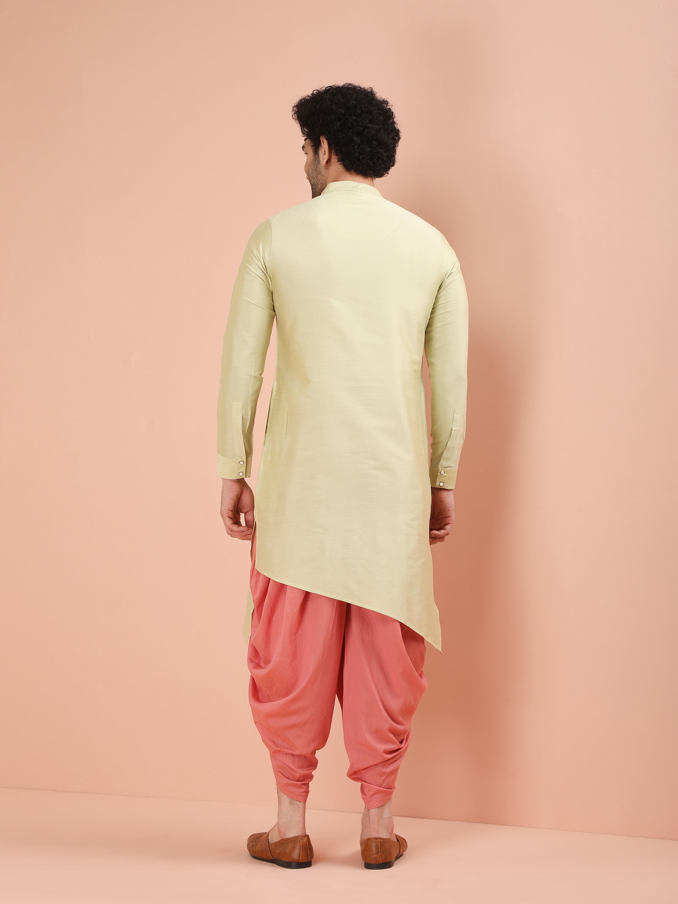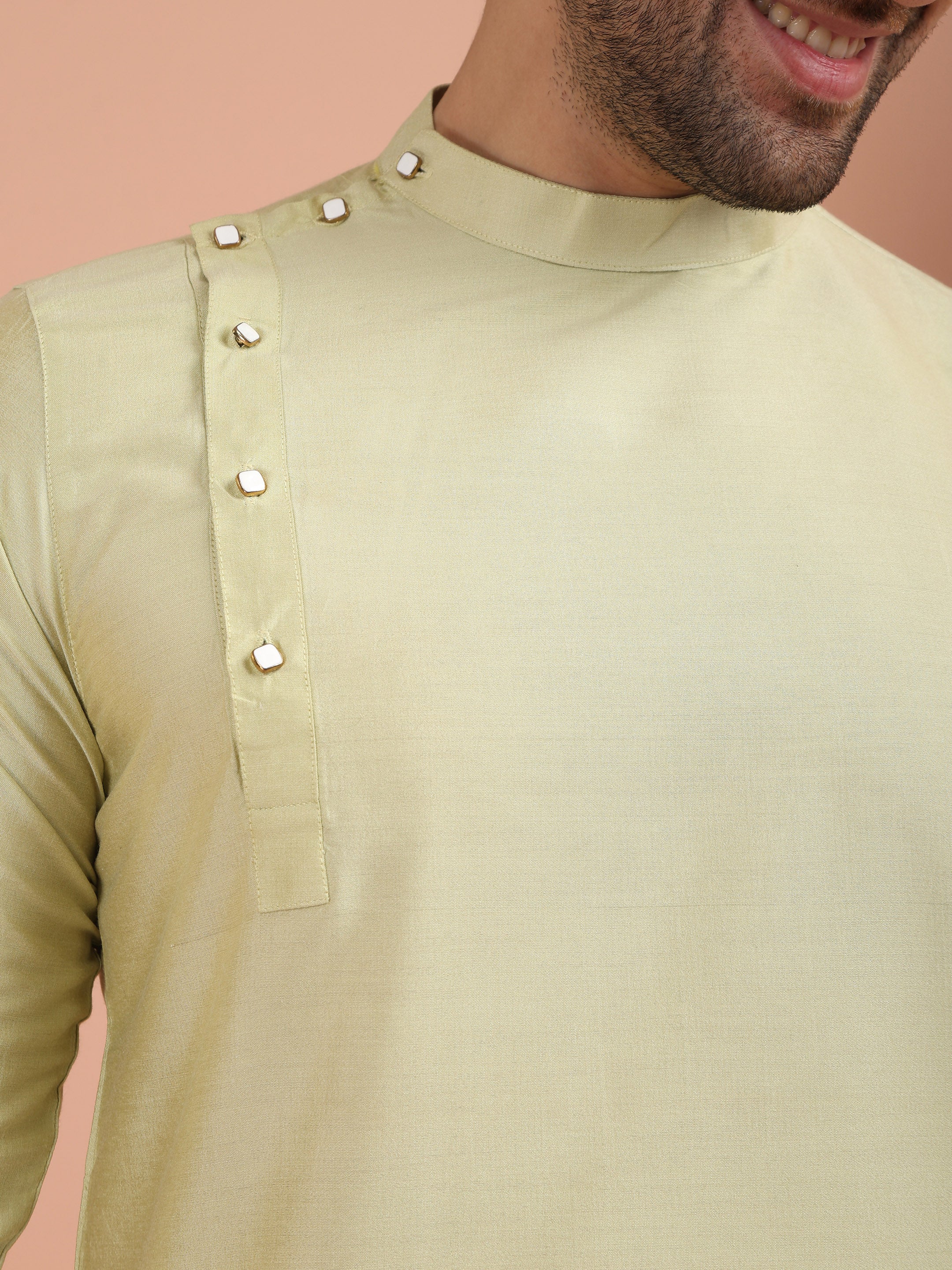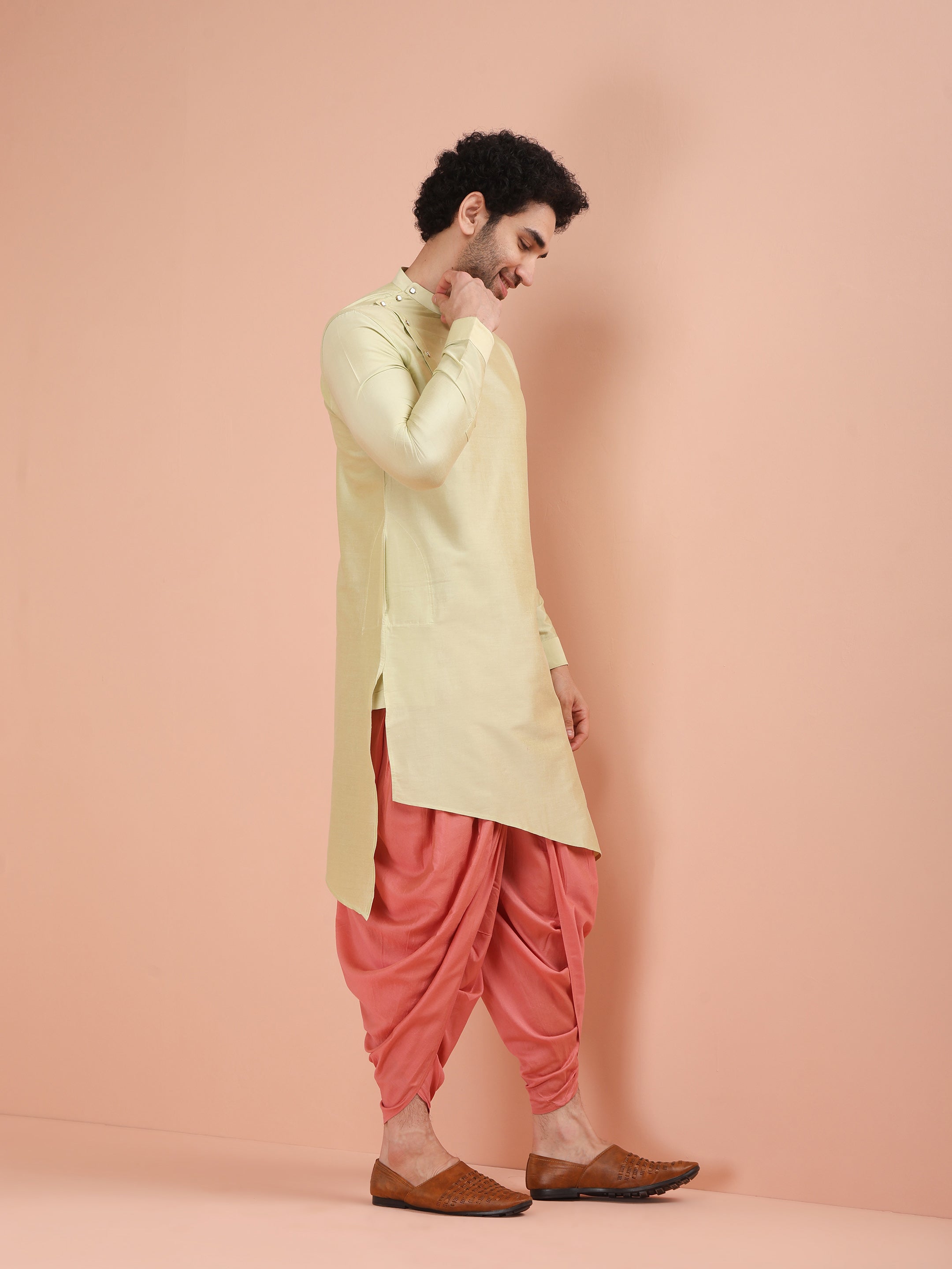 Step up your style with our Mint Green Asymmetric Kurta. Made from a comfy cotton blend, this solid-colored kurta has a cool, modern design that's perfect for any occasion. Whether it's a festive event or a casual outing, this kurta will keep you looking sharp and stylish.