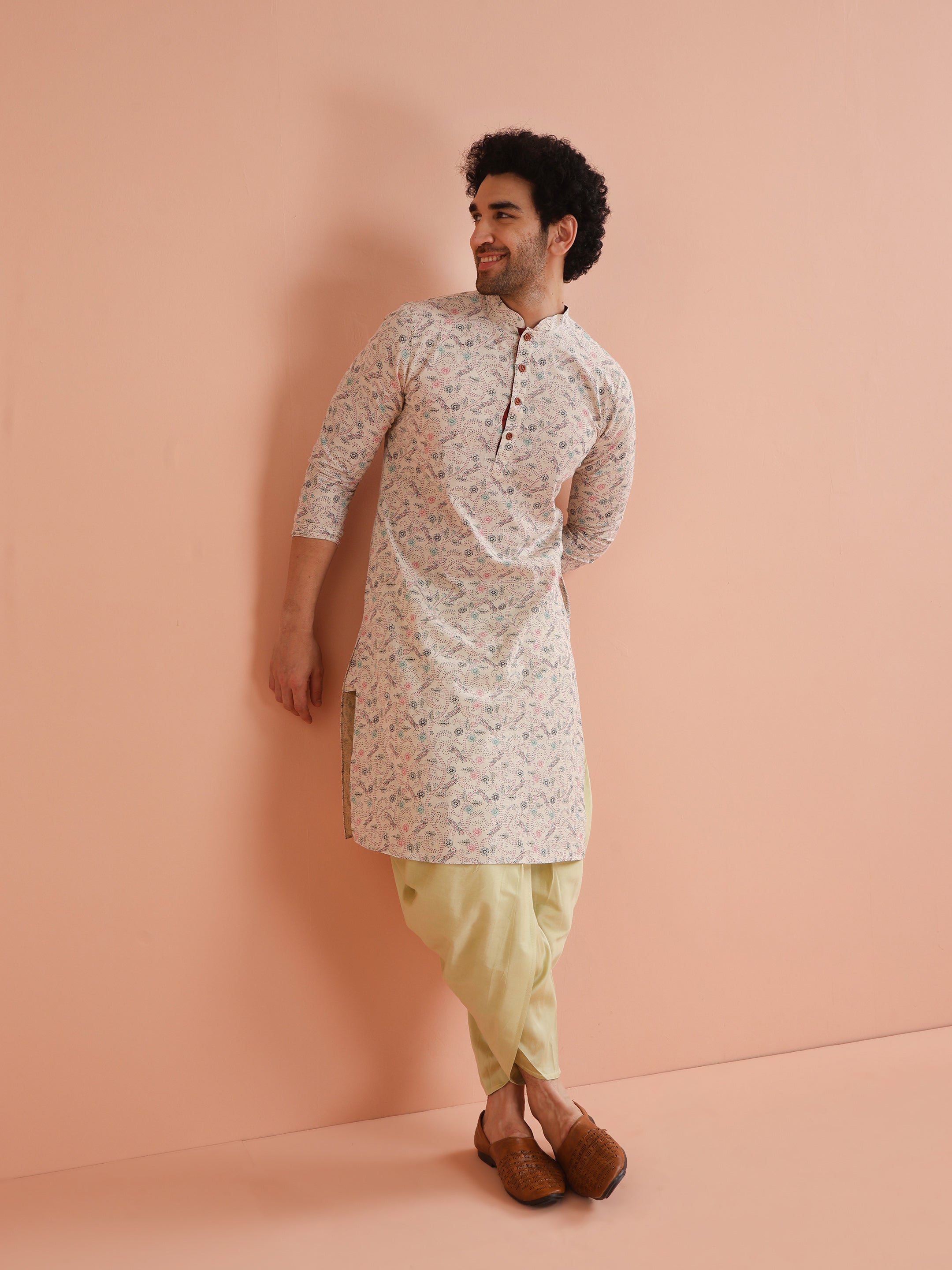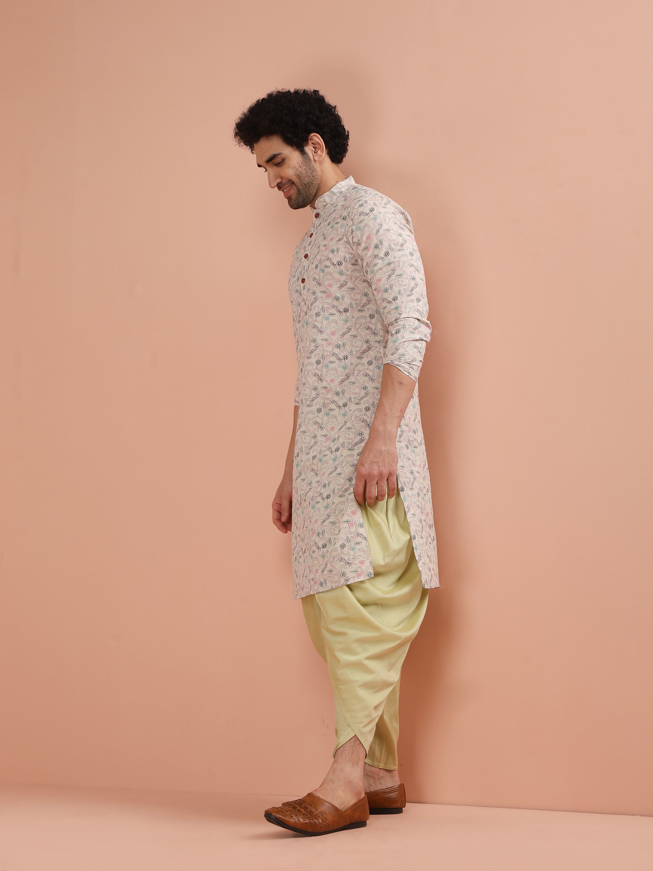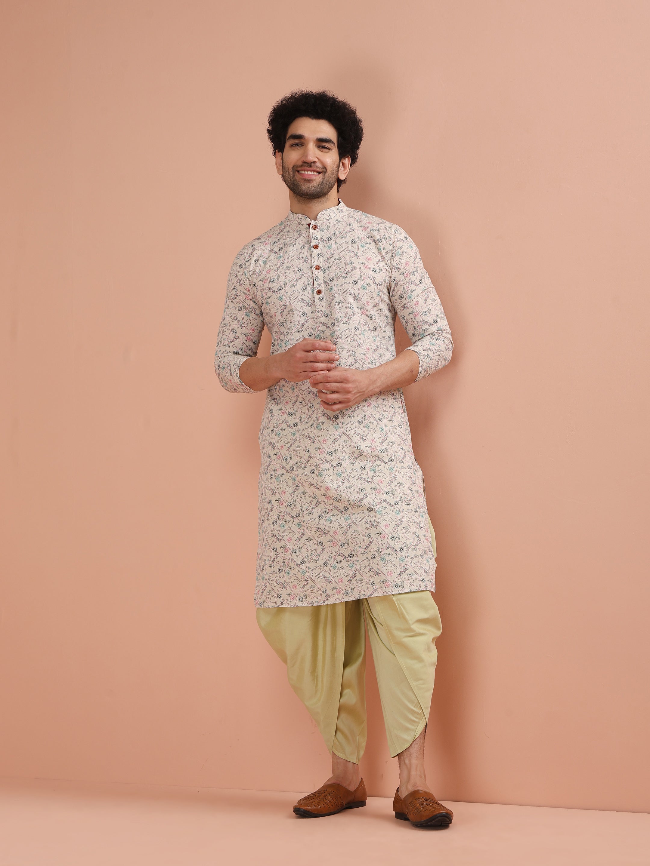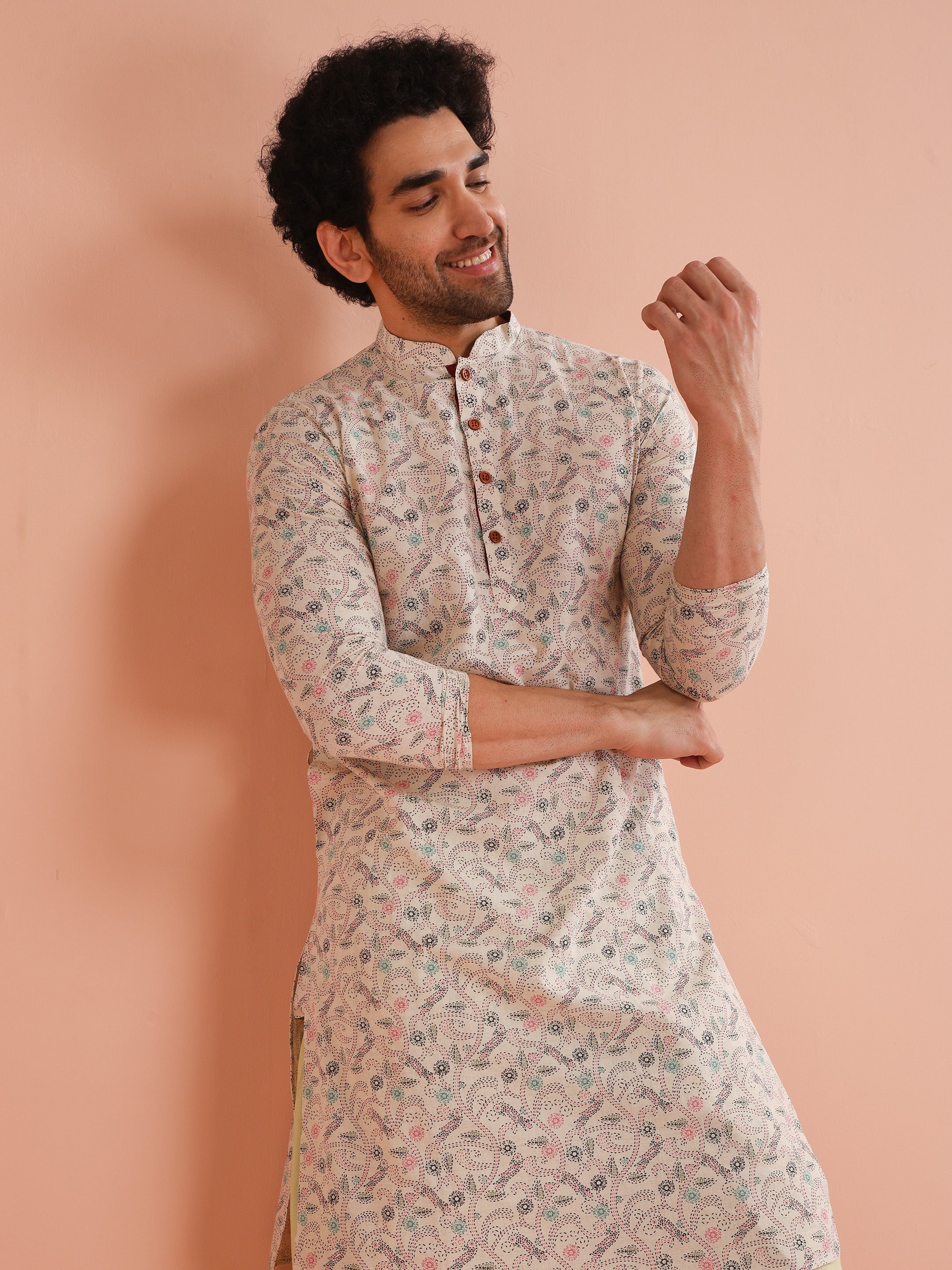 Keep it classic with our Off White Printed Kurta. Crafted from a cotton blend, this regular-fit kurta is both comfortable and stylish, ideal for any occasion.