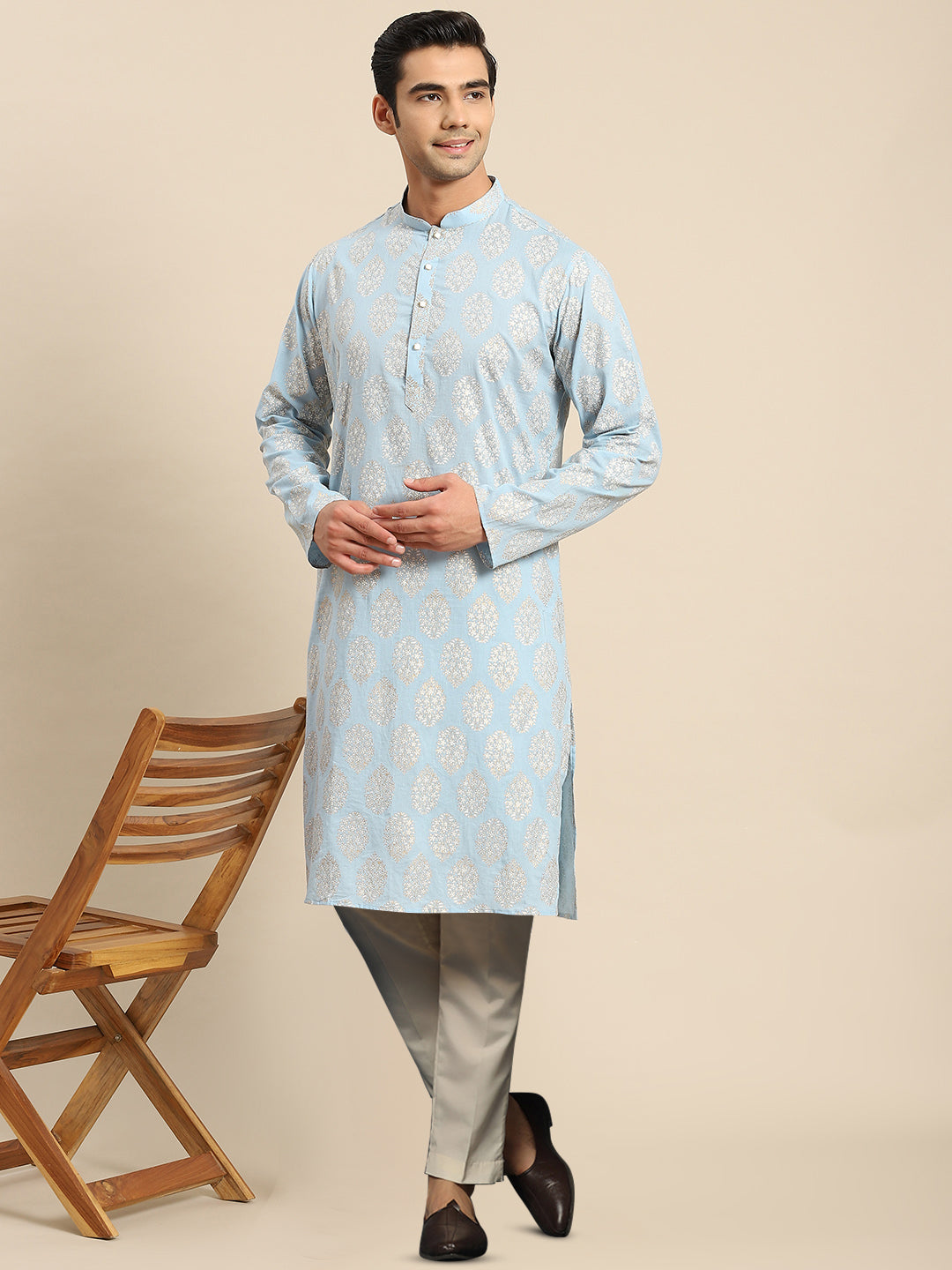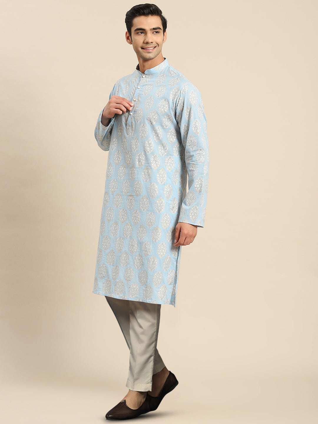 The Kisah kurta Sets is ideal for men looking for stylish yet comfortable attire. Crafted from Cotton Blend fabric, Grey color, stylish pattern, and comfortable fit make it perfect for festive wear.