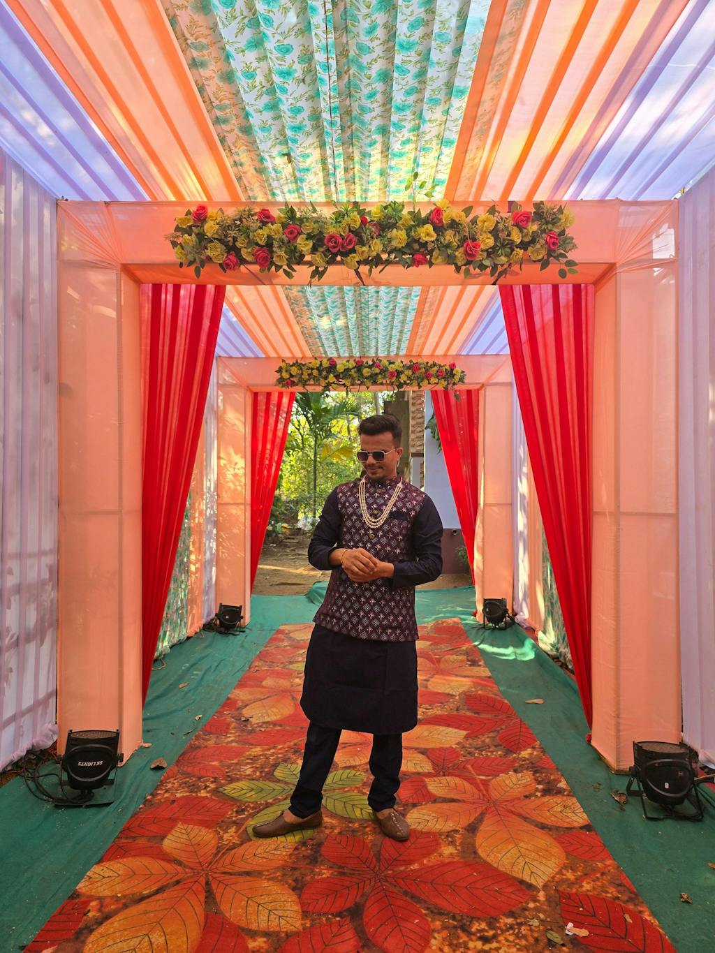 This Maroon Silk Blend Jacquard Kurta Jacket and Trouser Set is your go-to for festive occasions. The textured jacquard design elevates your look with sophistication, while the regular fit ensures comfort throughout the day. Perfect for those seeking a refined and stylish appearance at weddings, parties, and cultural gatherings. It’s the ultimate choice for making a statement.