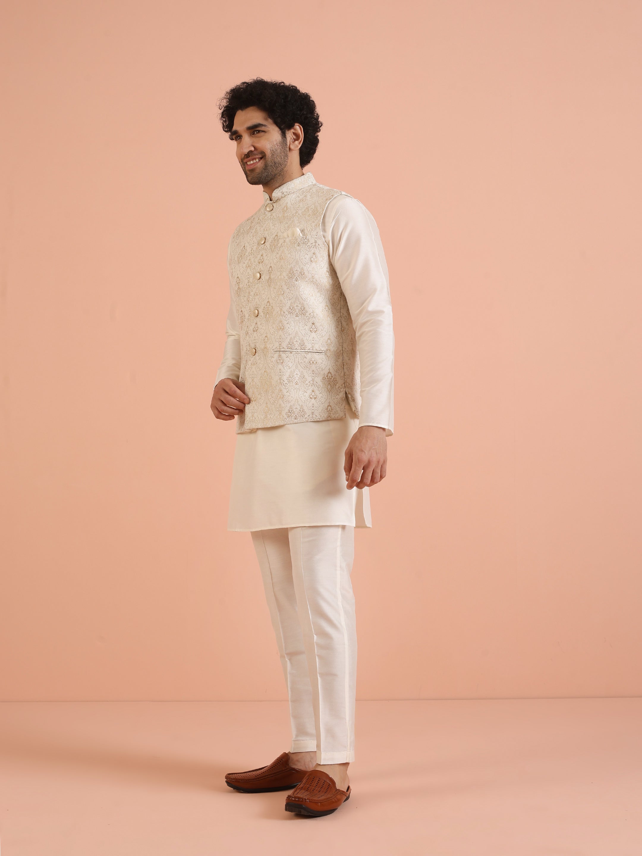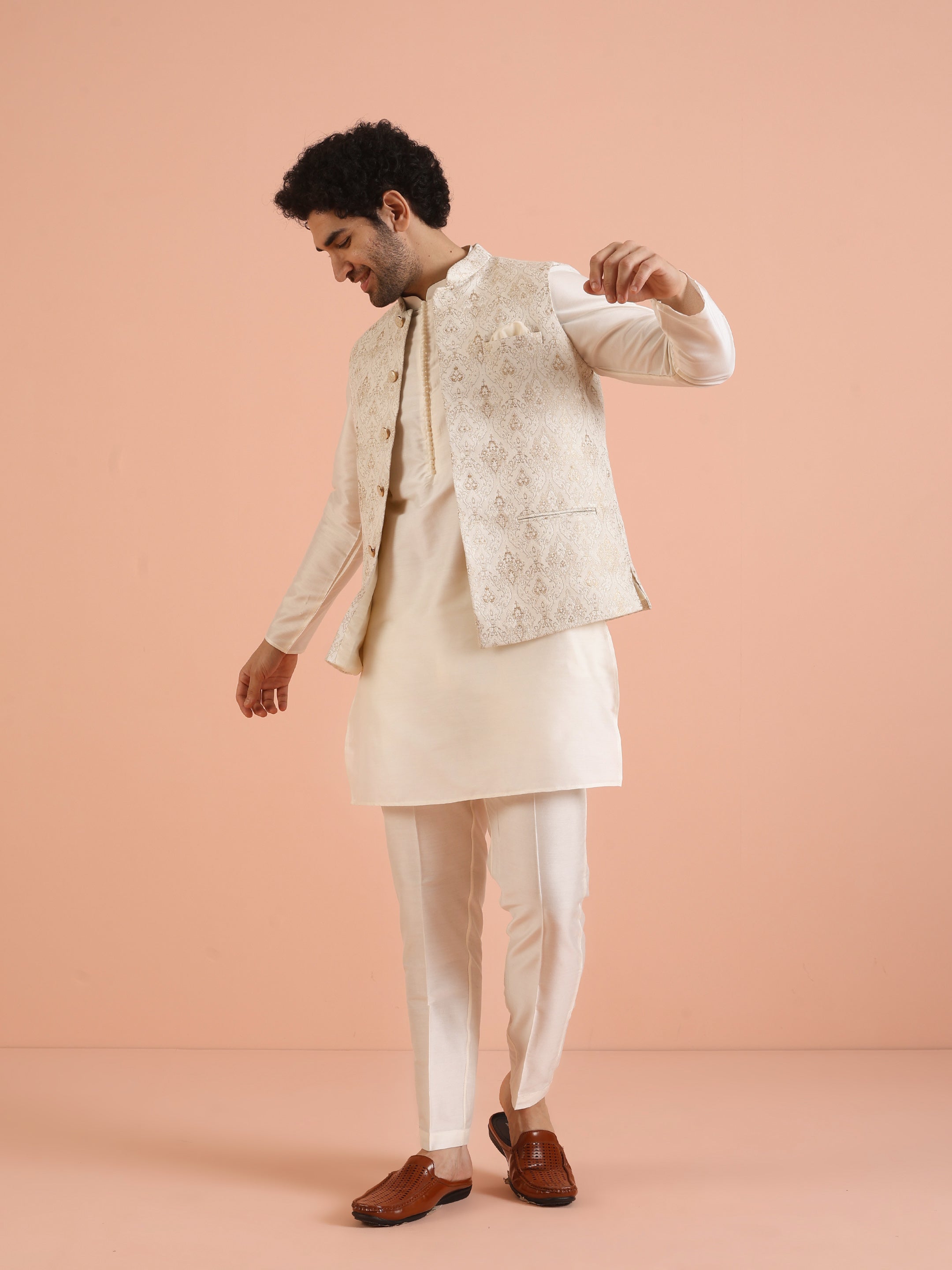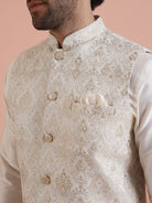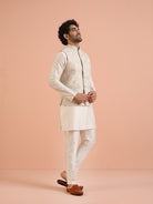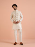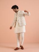 Cream Ethnic Motif Jacket Kurta Trouser Set