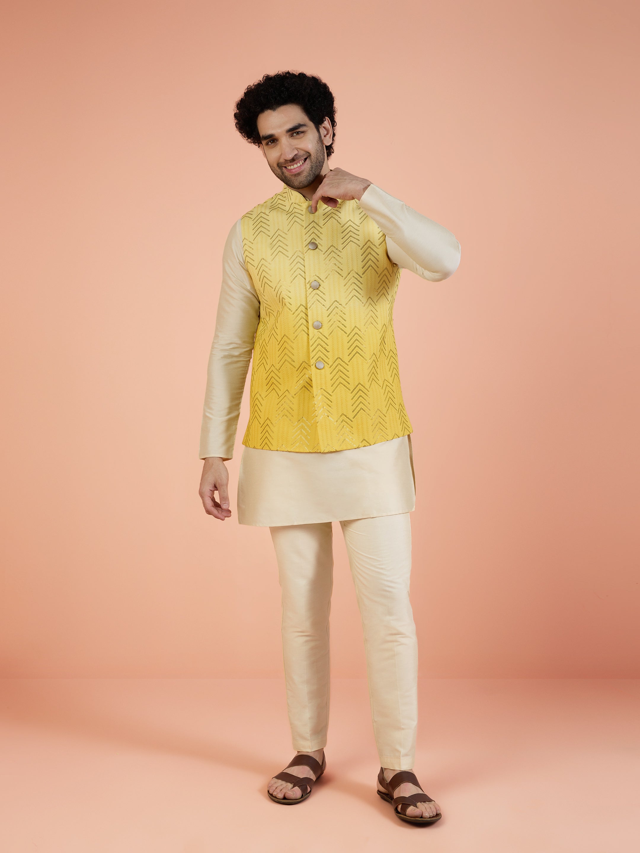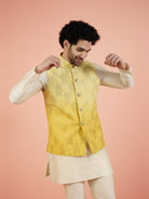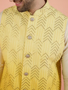 Experience classic elegance with this Men Ombre Embellished Sequinned Mid Kurta Jacket Trouser Set. The Embellished Pattern adds a refined touch, while the breathable Cotton fabric ensures comfort throughout the day. Ideal for festive events or casual wear, this Mid Kurta Jacket Trouser Set is a wardrobe essential..