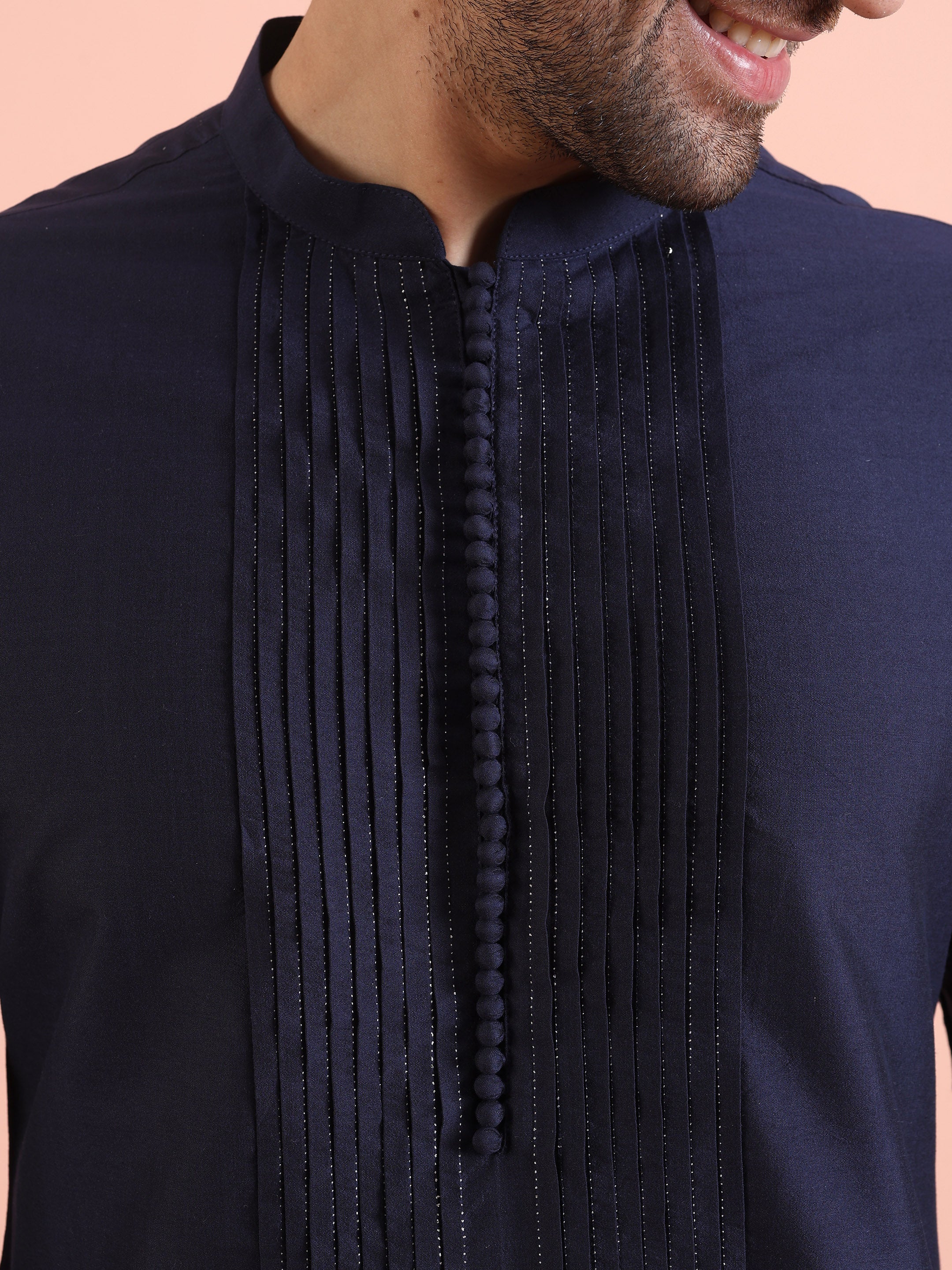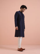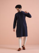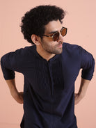 Men Navy Blue Pleated Pleated Kurta Trouser Set