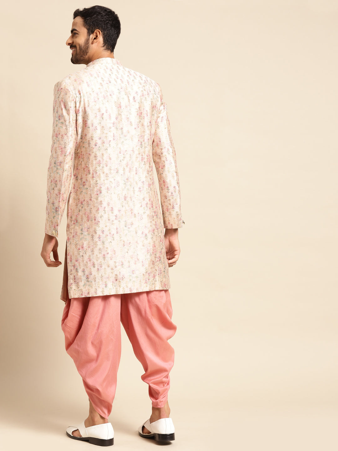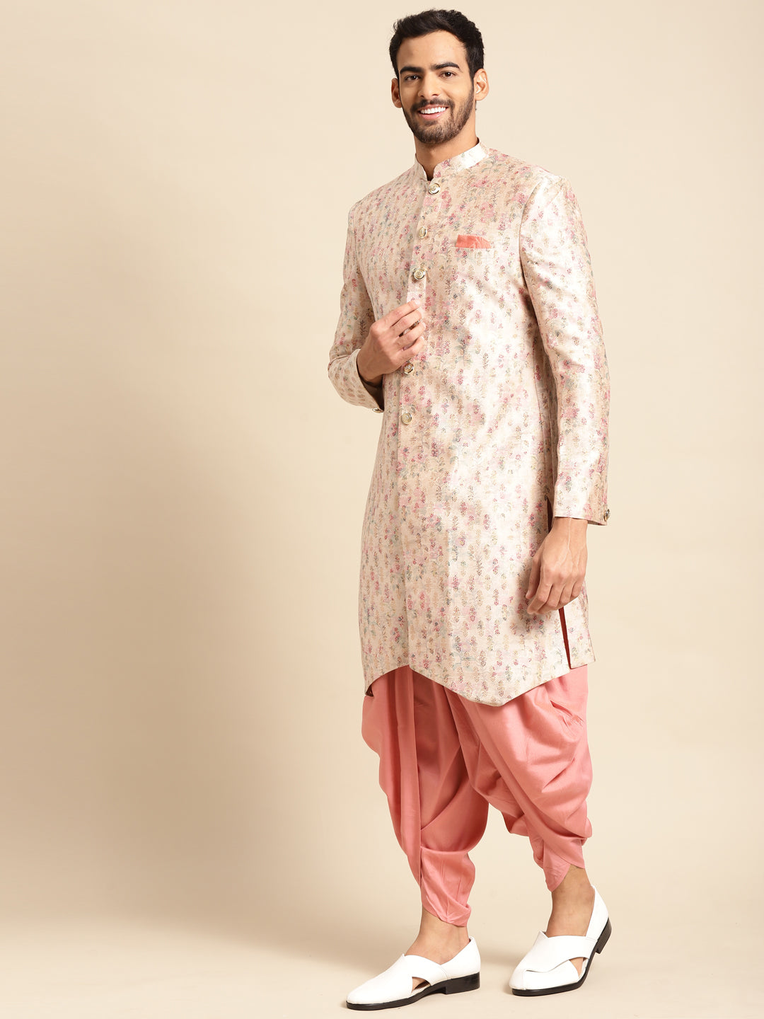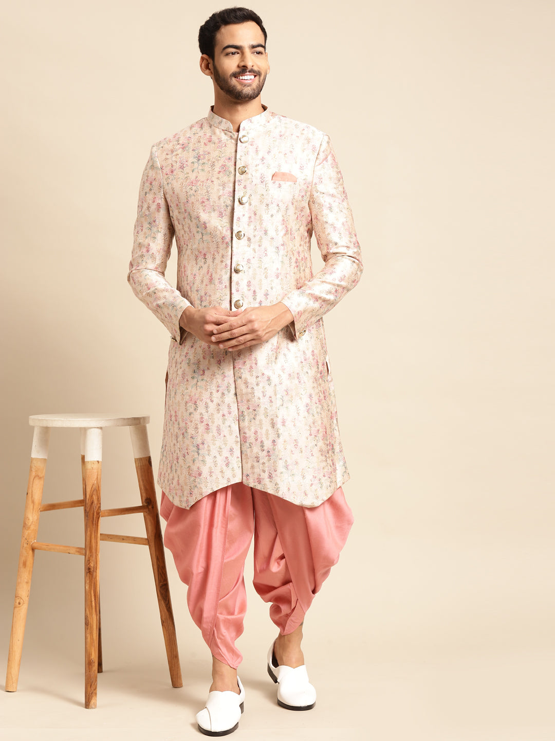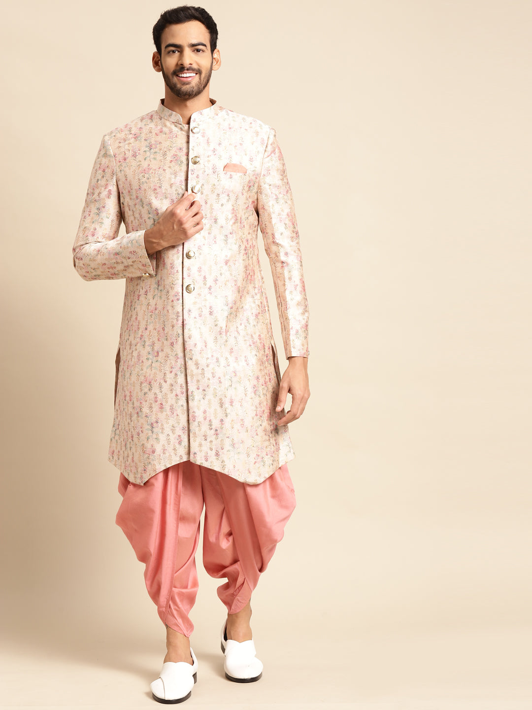 This Indowestern set is an elegant mandarin collar style that is perfect for occasional wear. With a full sleeve design and comfortable fabric, it will make you look stylish. Add some bling to your outfit and you can take things up a notch with some mochari to complete the look.
