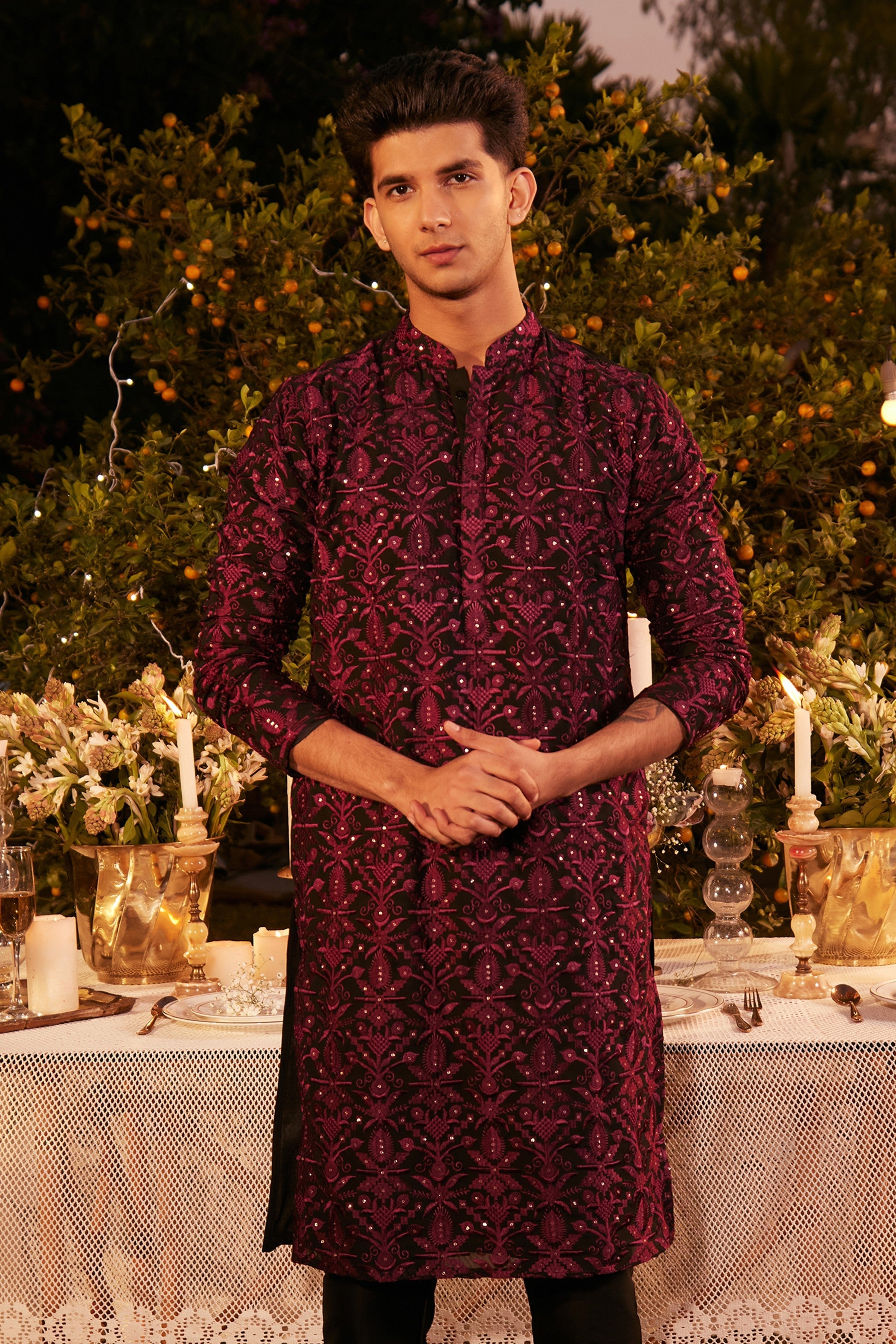 Black & Maroon Embroidered Kurta – Festive & Wedding Wear
