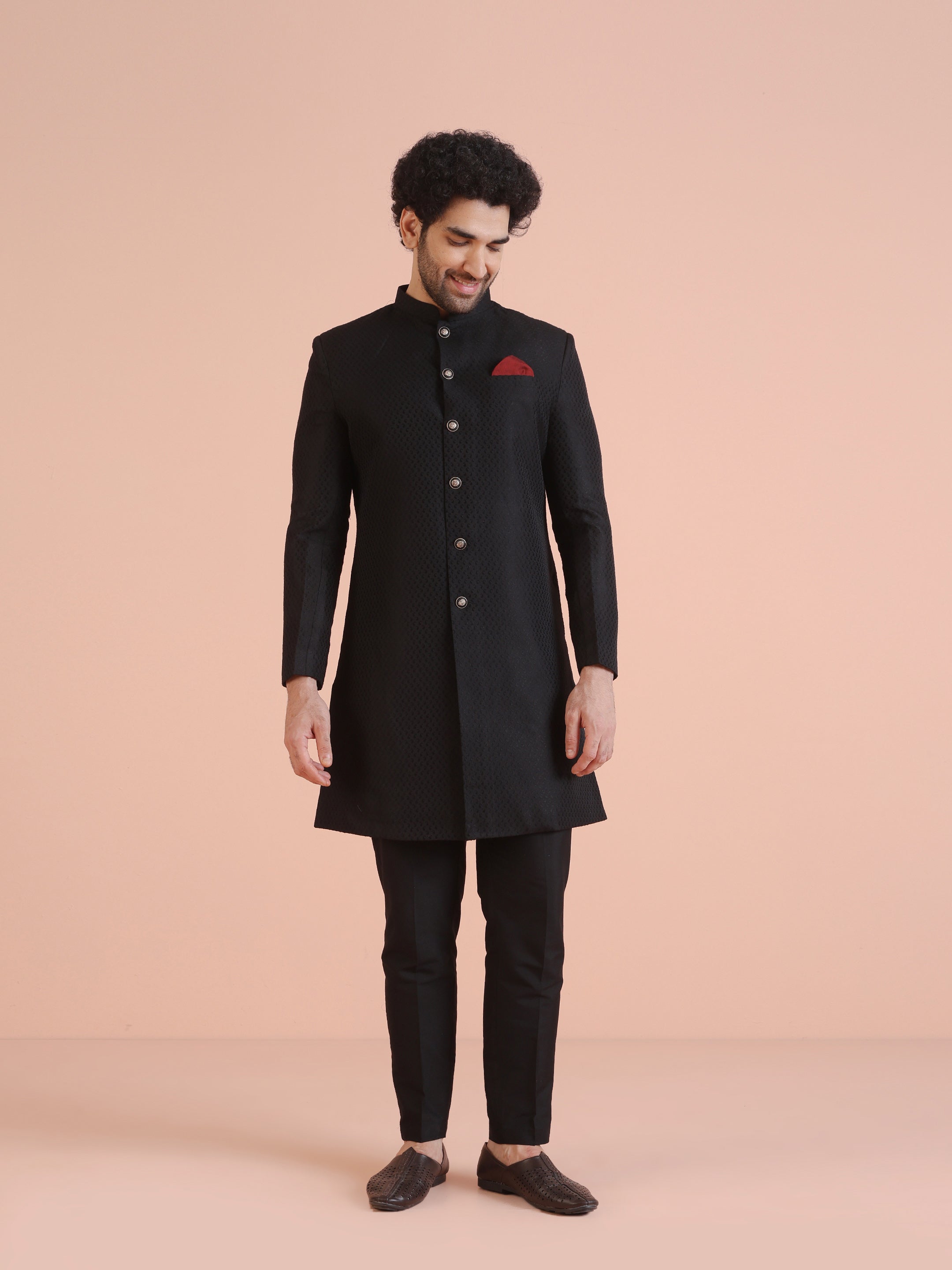 Men Black Indowestern Trouser Set