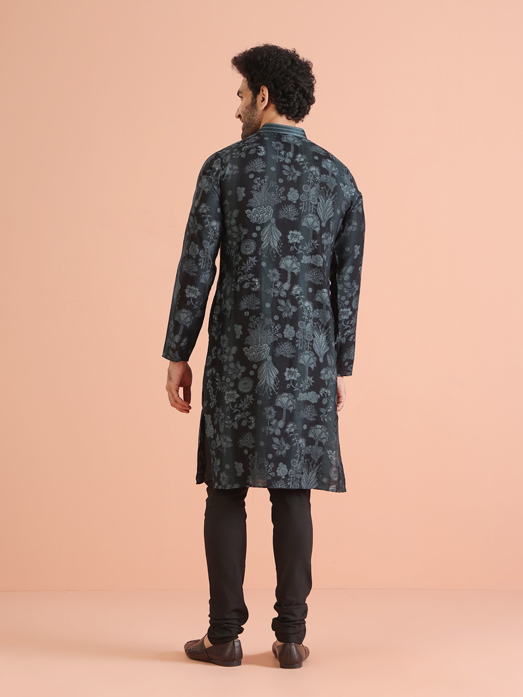 Embrace sophistication with the Men's Black Cotton Blend Kurta Churidar Set. Featuring a stylish printed pattern, this kurta offers a refined look for any occasion. The breathable cotton blend ensures comfort and ease, making it perfect for both festive events and casual gatherings. With its timeless design and modern appeal, this kurta churidar set is a versatile addition to your wardrobe, bringing effortless style to your everyday wear.