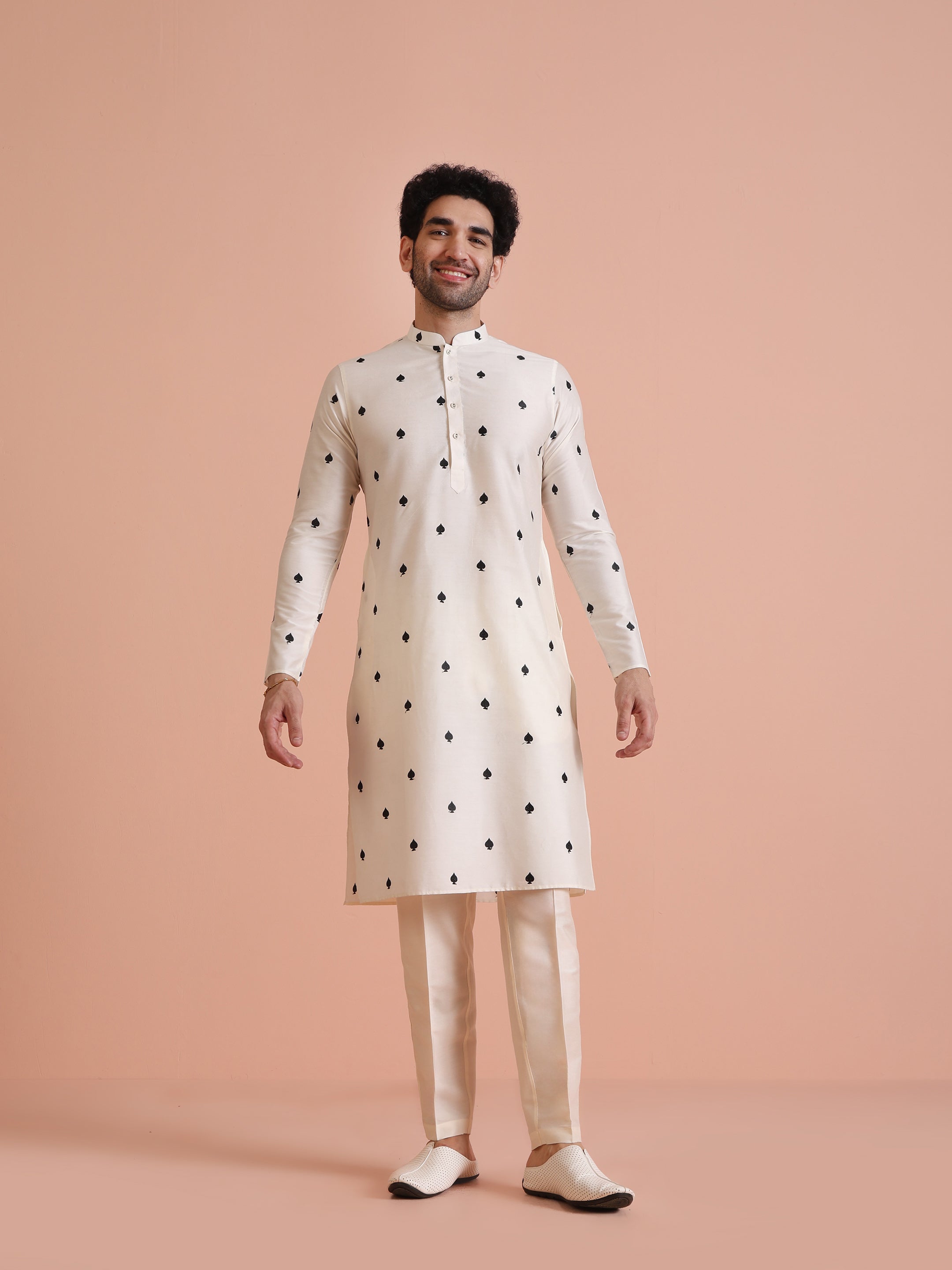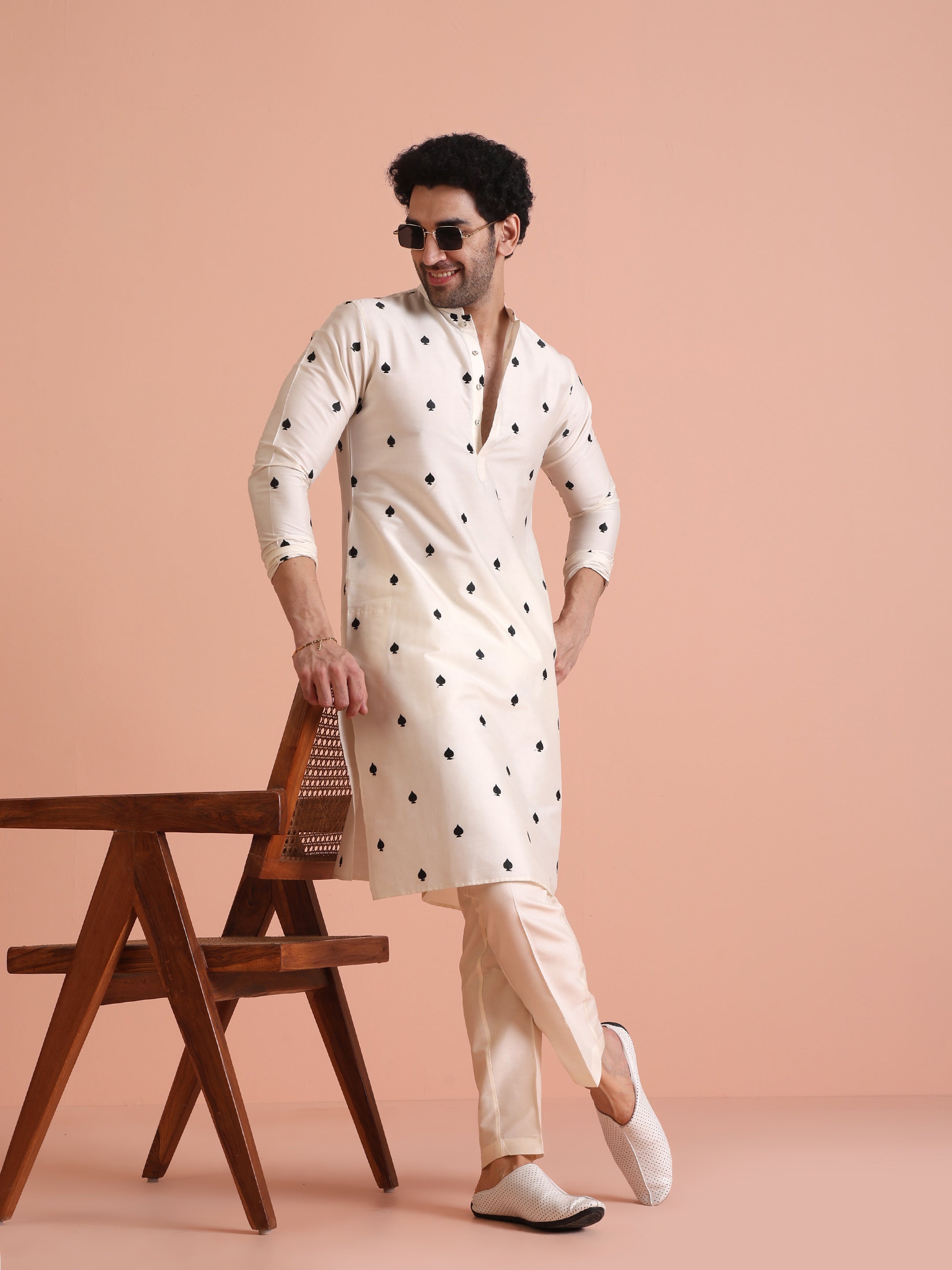 This Kurta Trouser Set with Cream Color is an elegant mandarin collar style that is perfect for occasional wear. With a full sleeve Stylish design and comfortable fabric, it will make you look stylish.