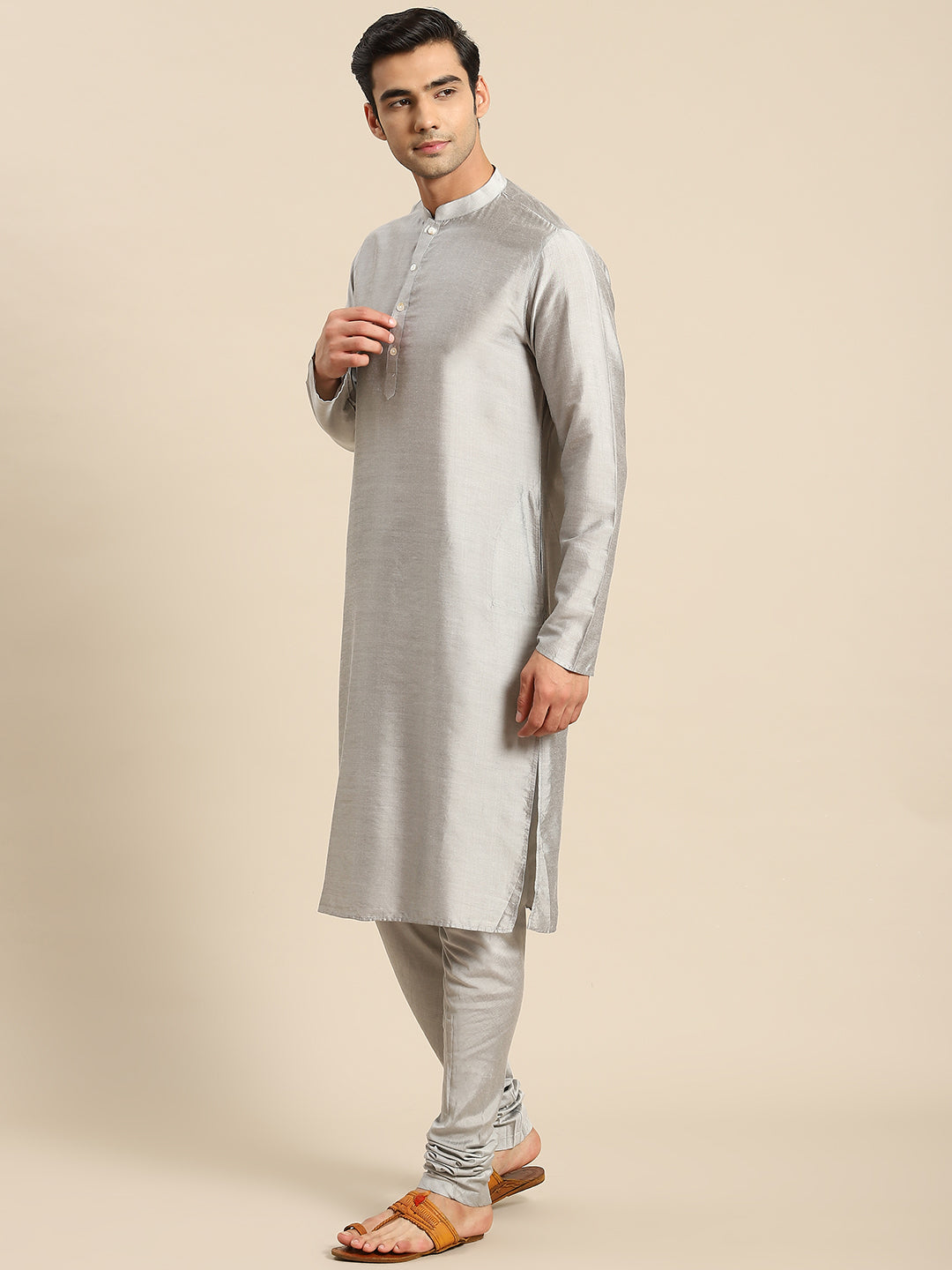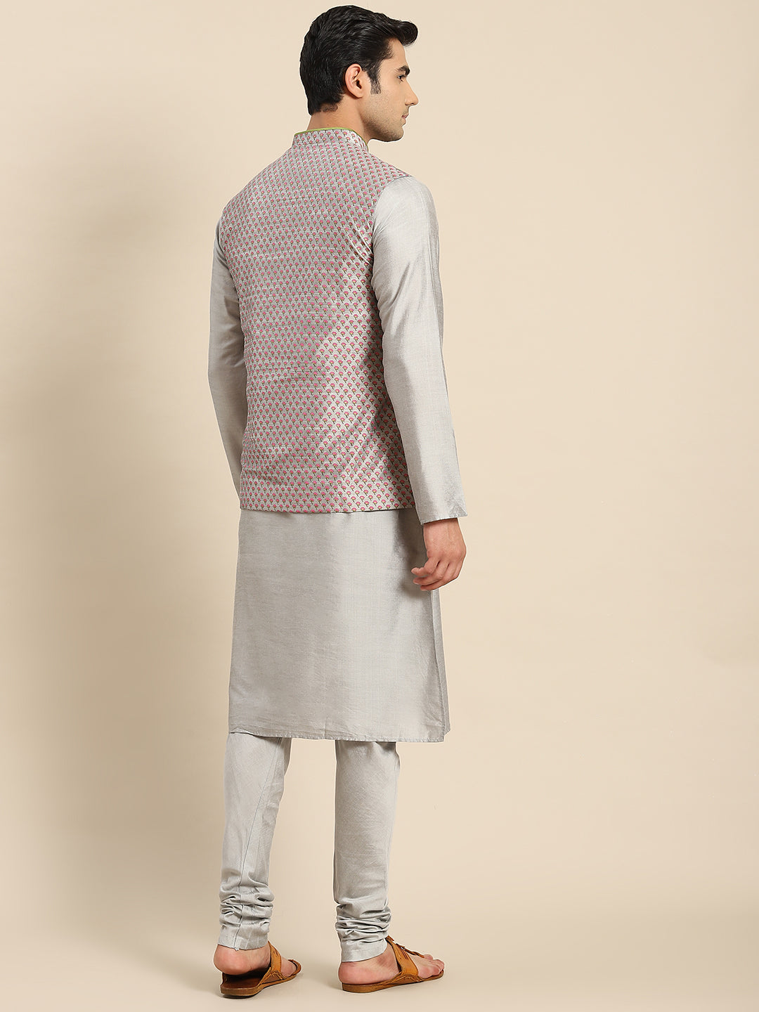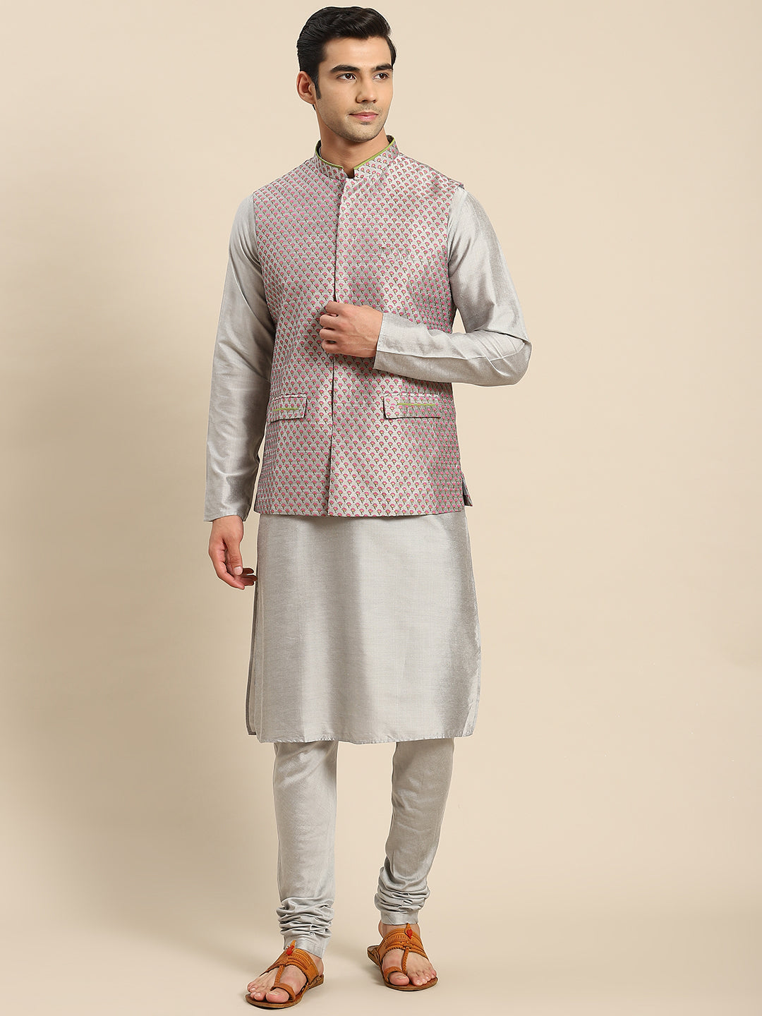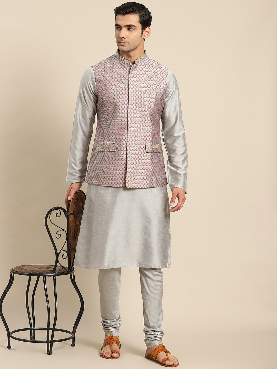 Men Grey Kurta Jacket Set