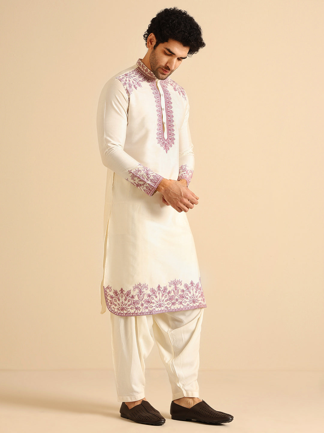 This Off White Kurta Patiala Set is a yes for all your casual occasions. The Kurta is of Cotton Blend which adds on to the defined and modern look. This set includes Bottomwear to complete your look