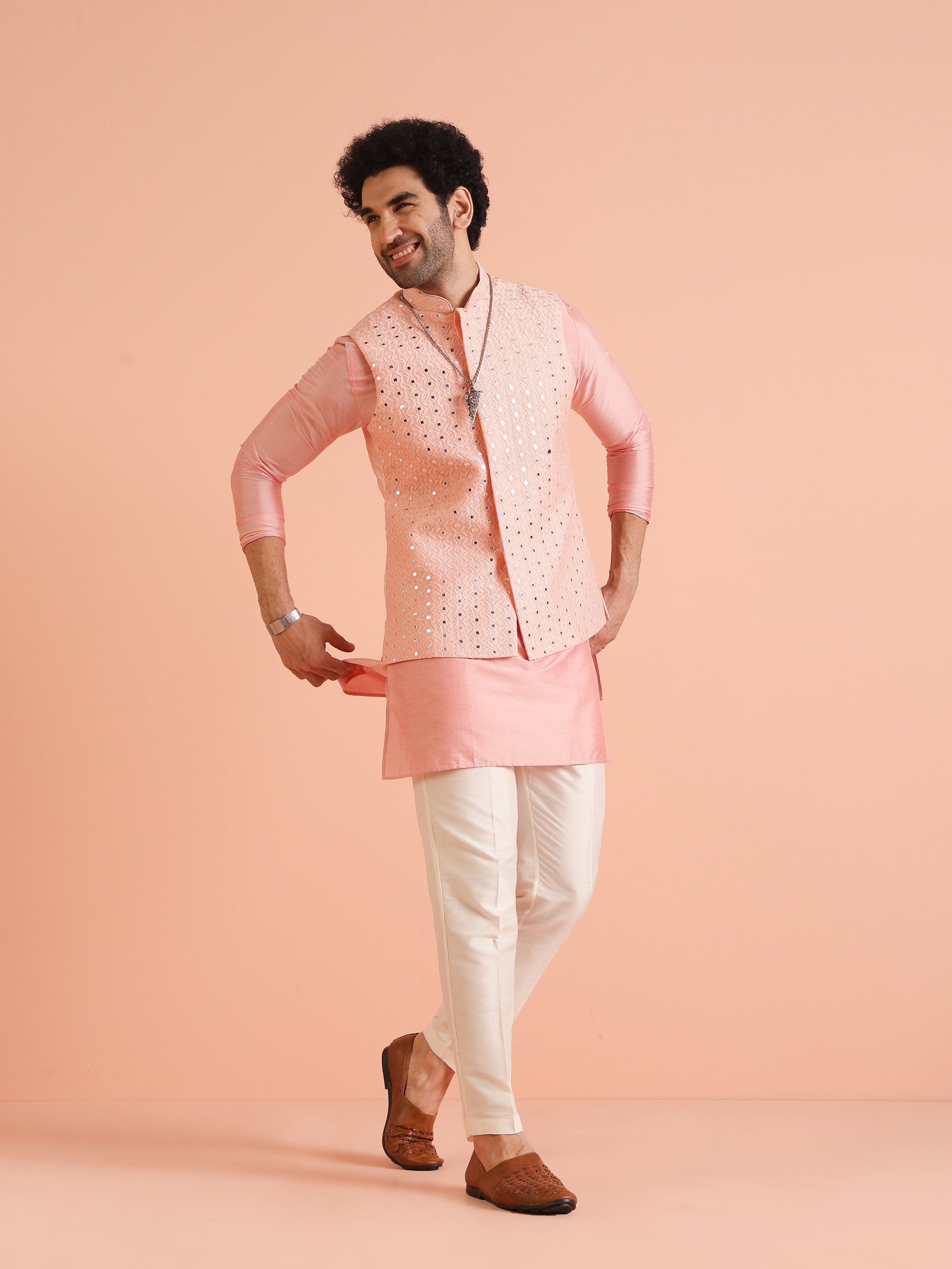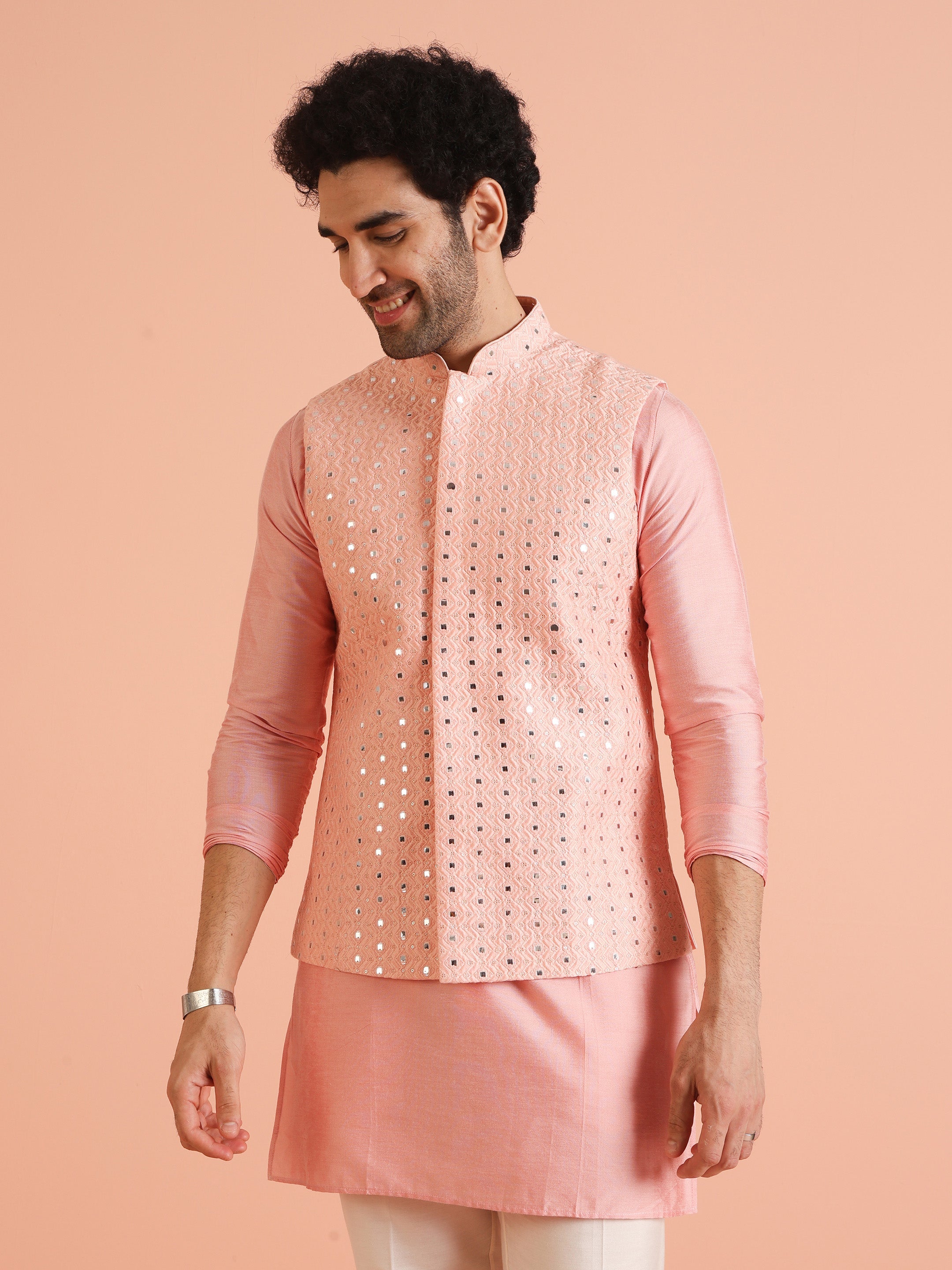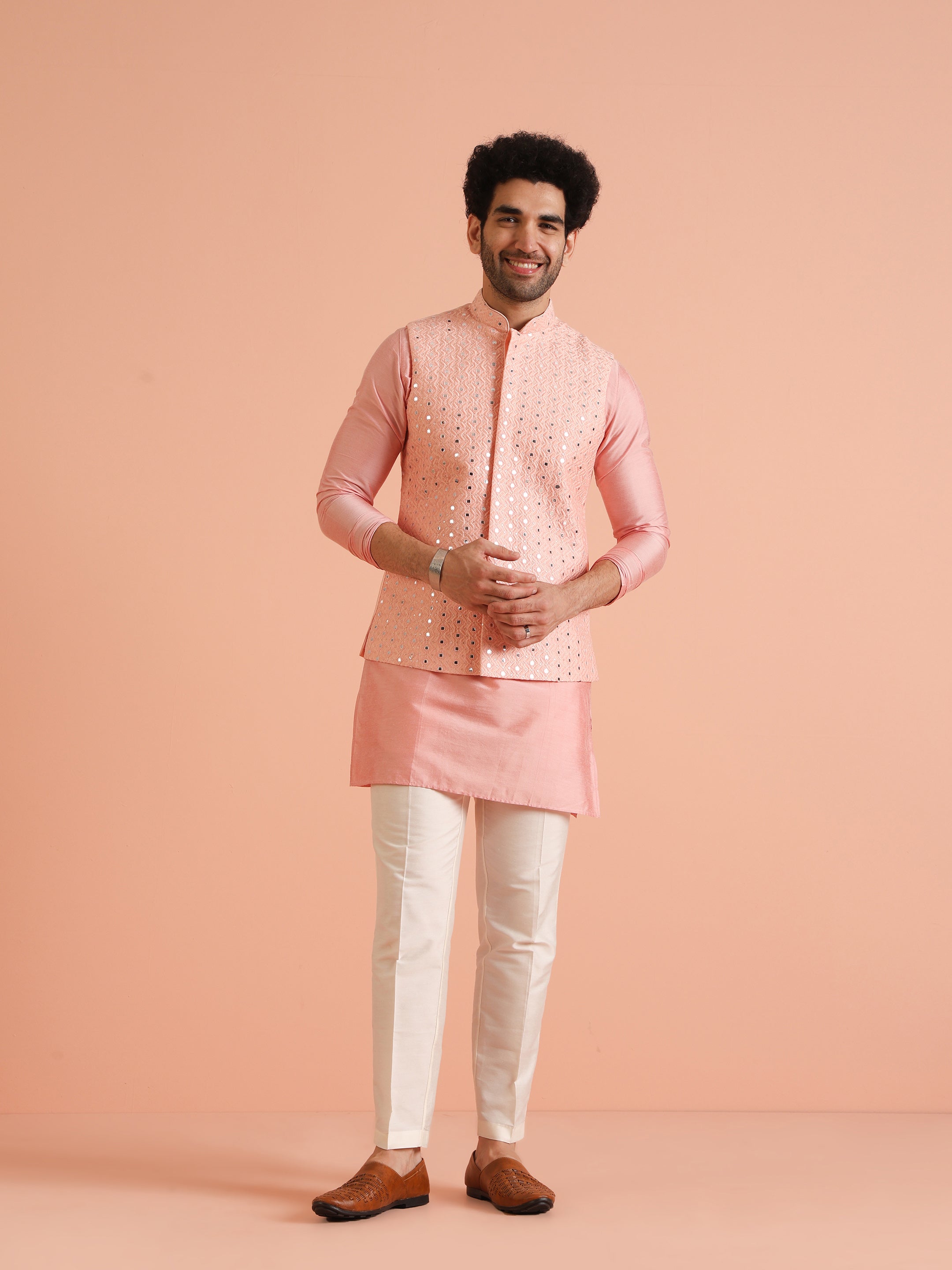 This Nehru Jacket is just perfect for festivals, or any kind off occasions. Its mandarin collar, style gives a charming look, this classic design is made from Silk Blend fabric and Stylish Embellished Pattern comes in Pink colours. Perfect for any occasion.