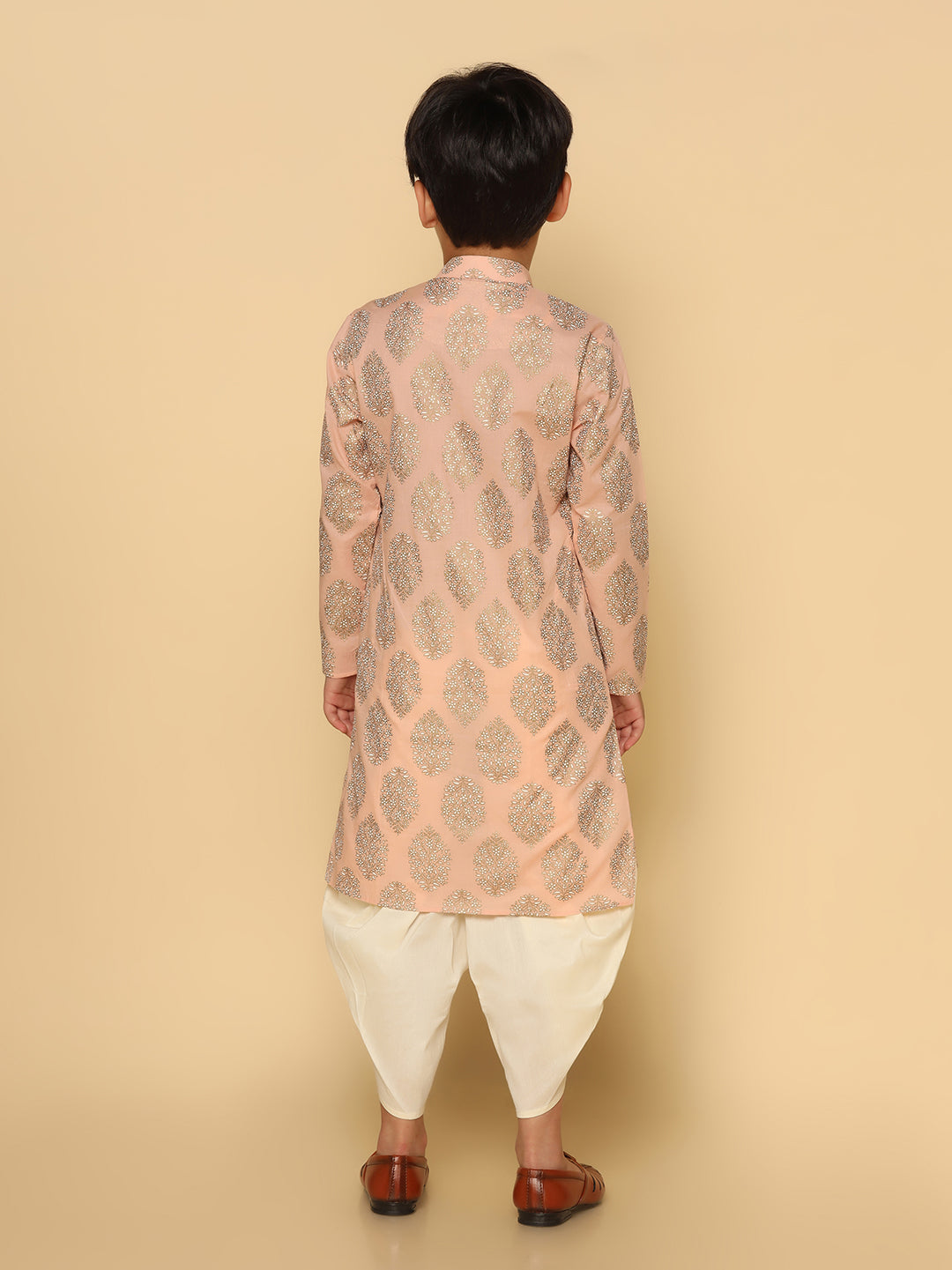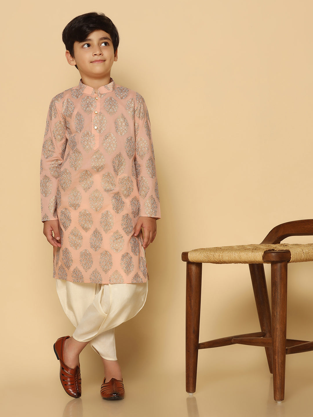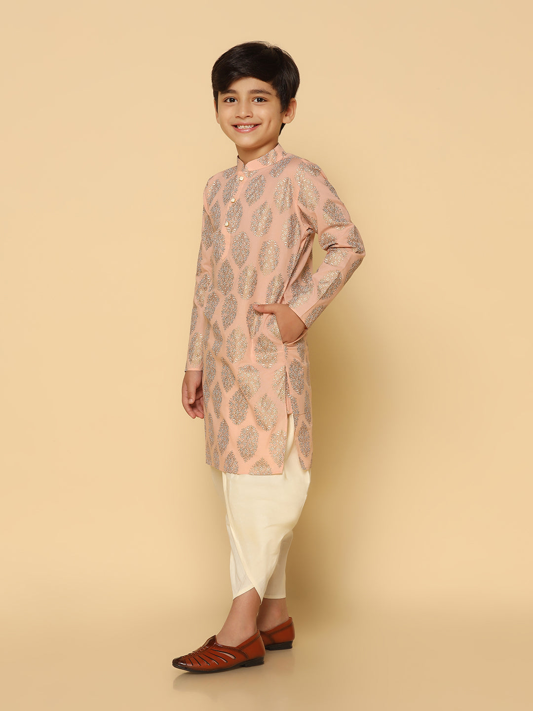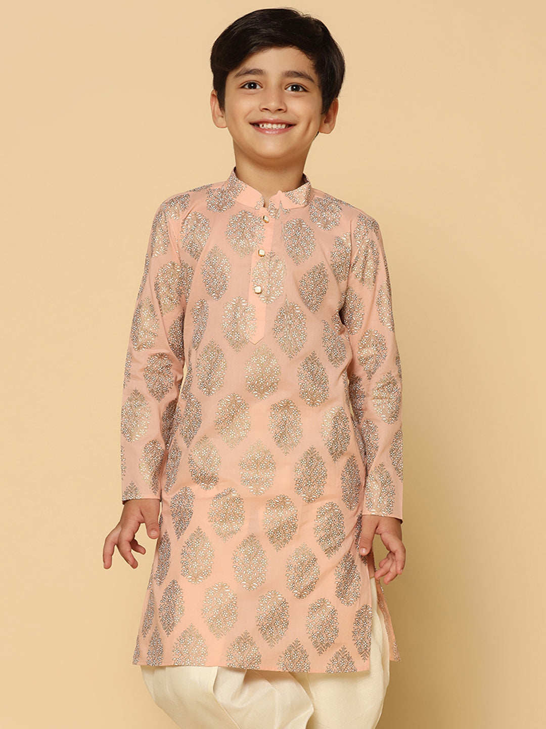 Brighten up your ethnic wardrobe with this pink printed cotton blend kurta. Designed in a regular fit for ease and comfort.