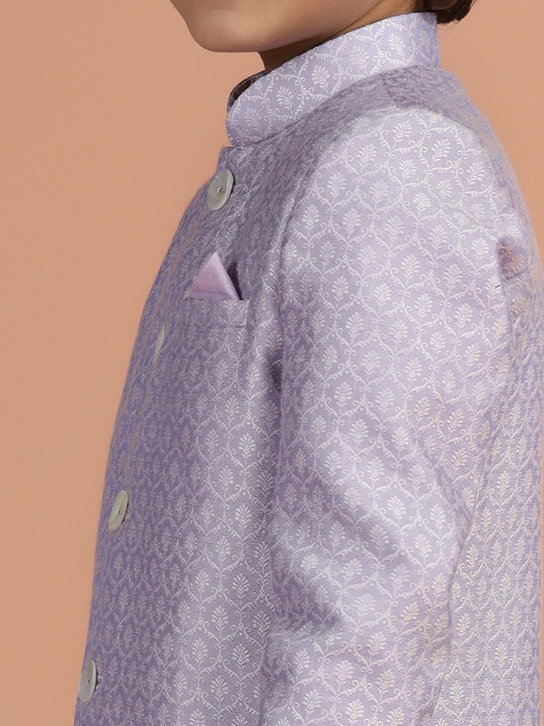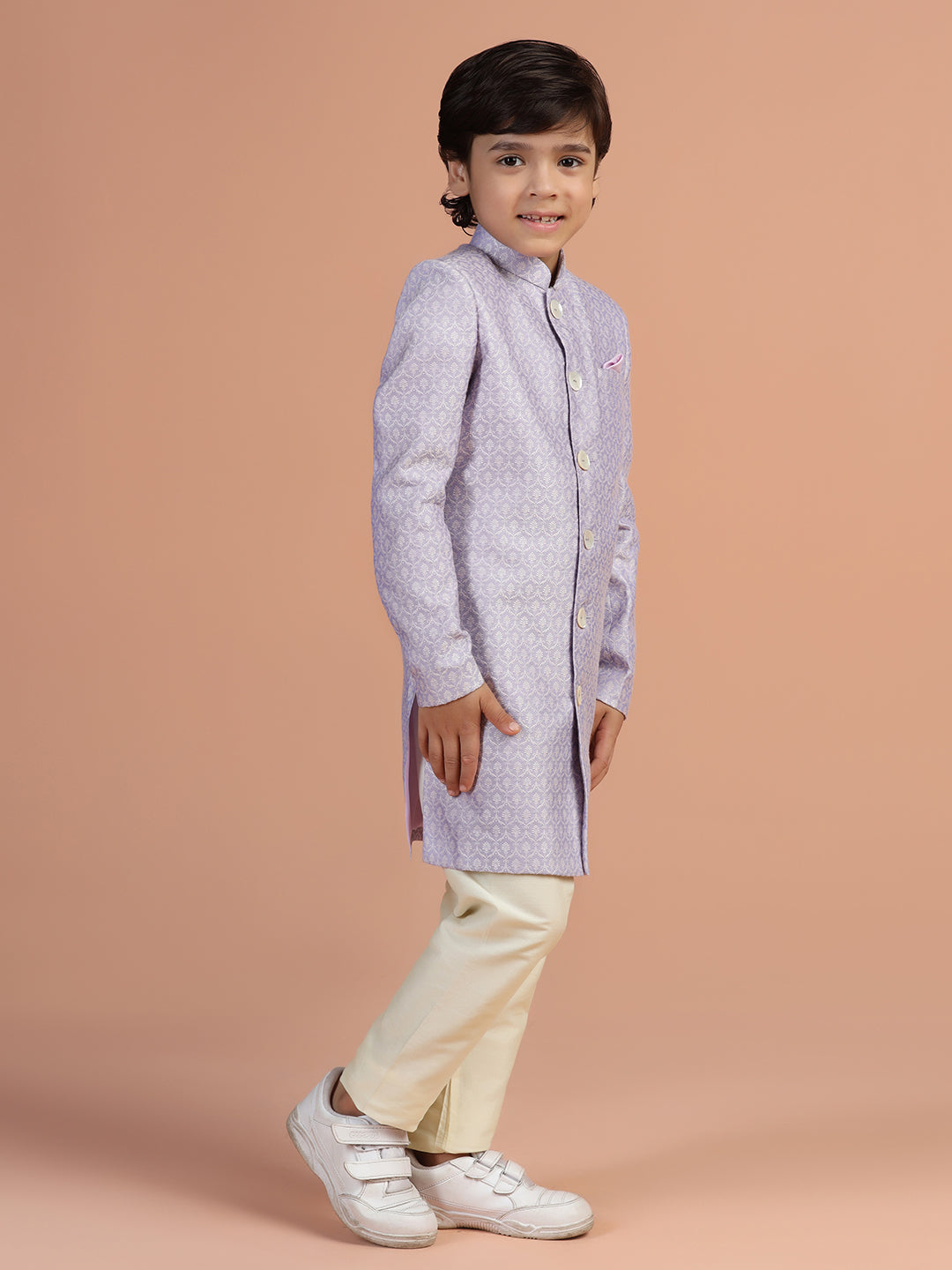 Lavender jacquard sherwani pyjama set for boys – soft, elegant, and perfect for weddings, festive events, or celebrations.