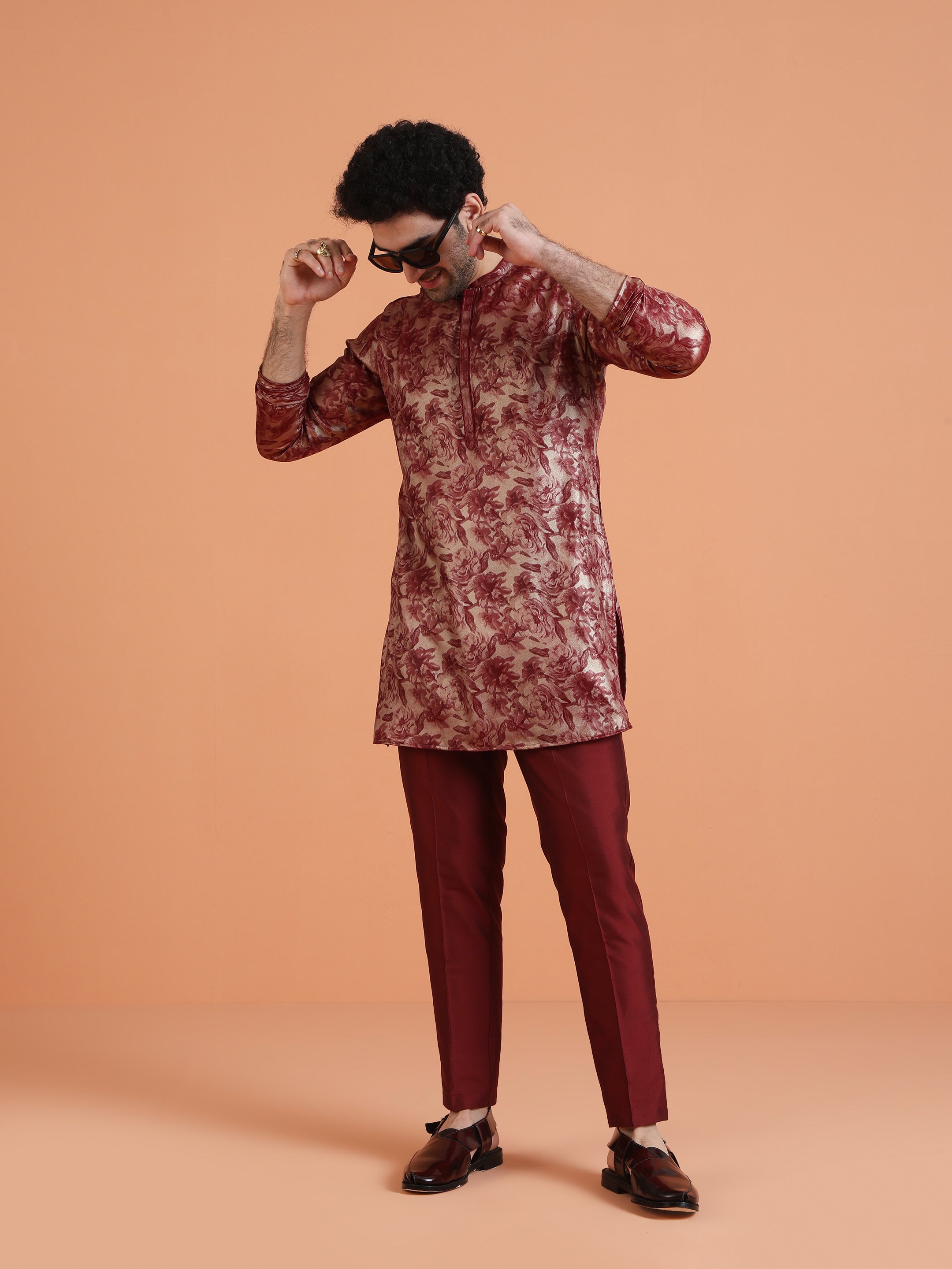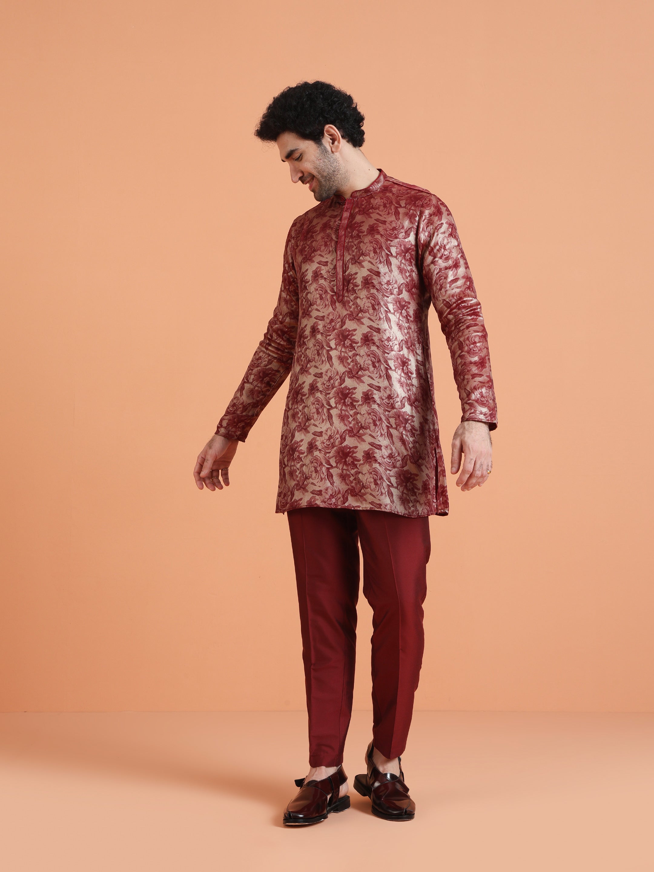 Maroon floral printed kurta set with straight-fit trouser, perfect for festive, wedding, and ethnic occasions. Elegant, stylish, and comfortable ethnic wear.