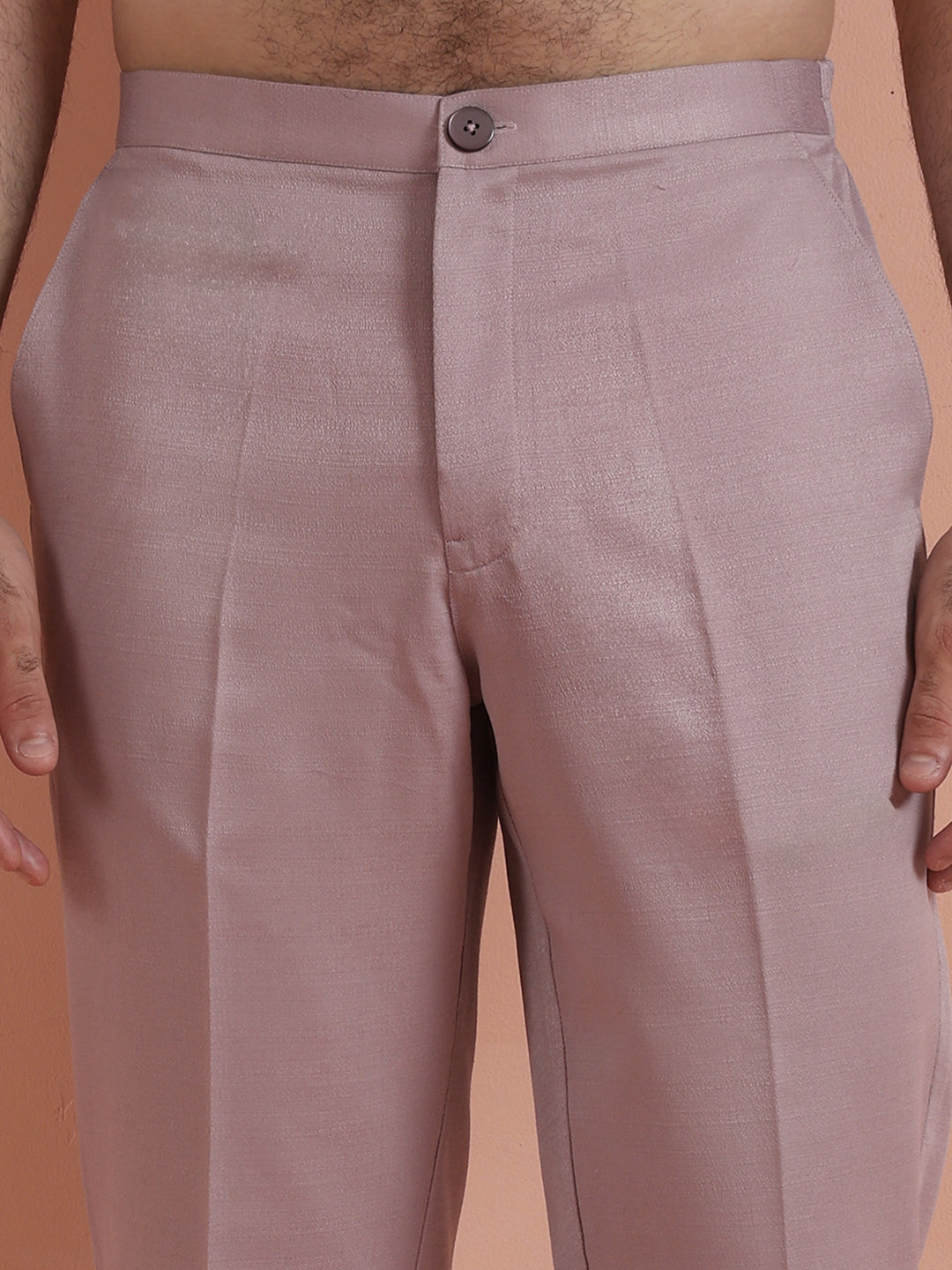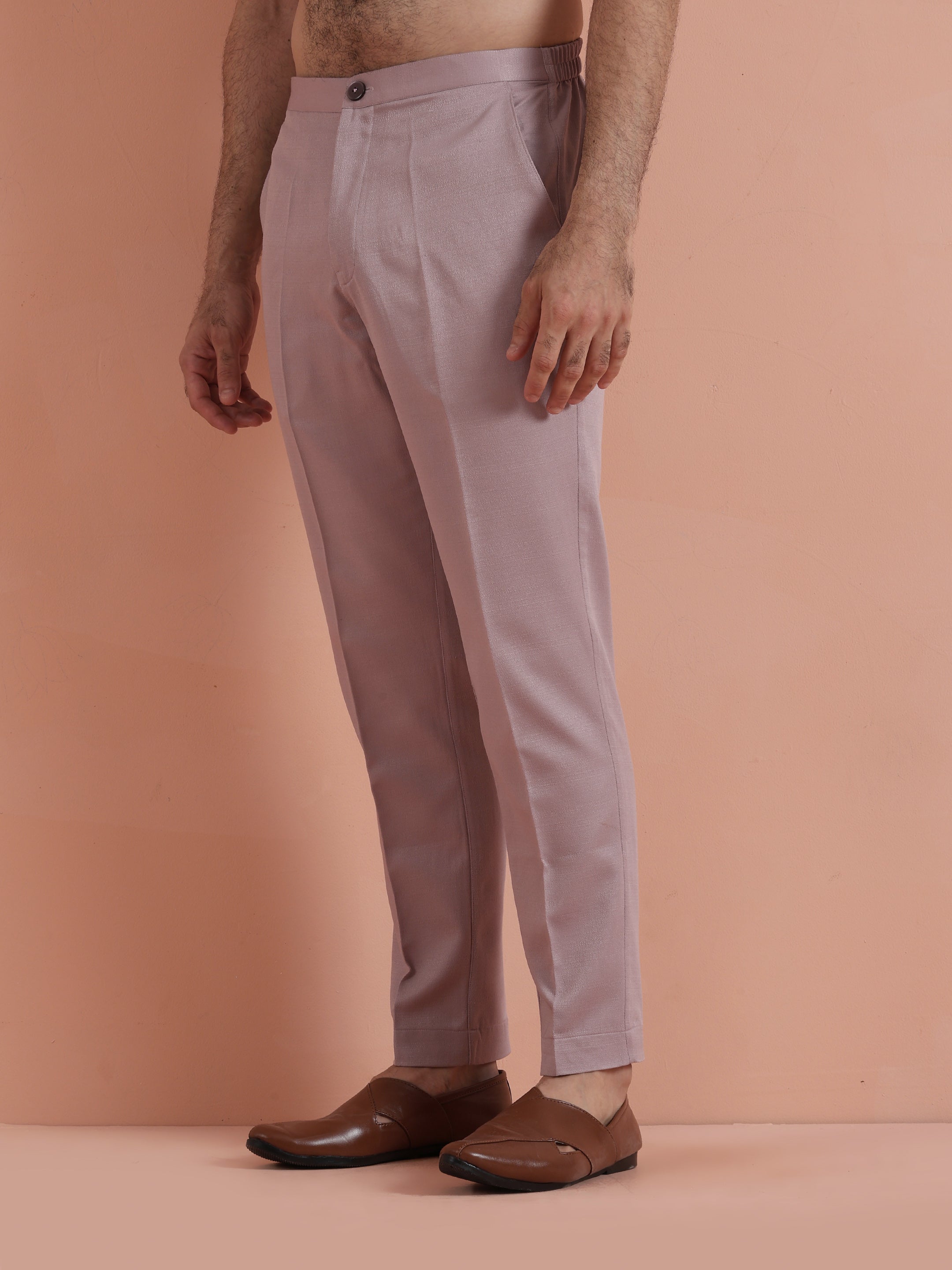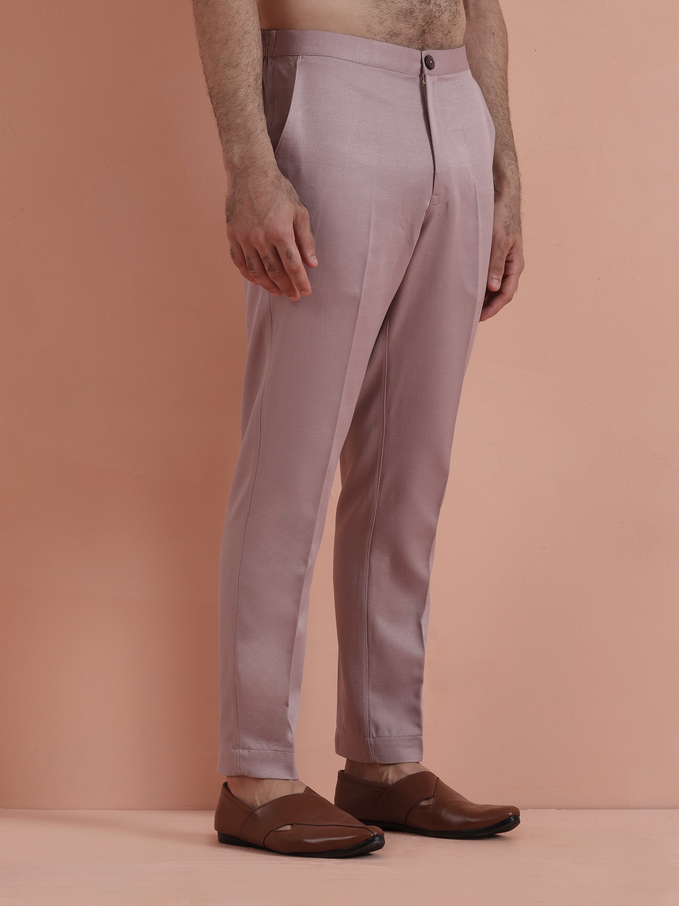 Mauve blended ethnic trouser with slim fit, button-zip closure & side pockets ideal bottomwear for kurtas and festive occasions.
